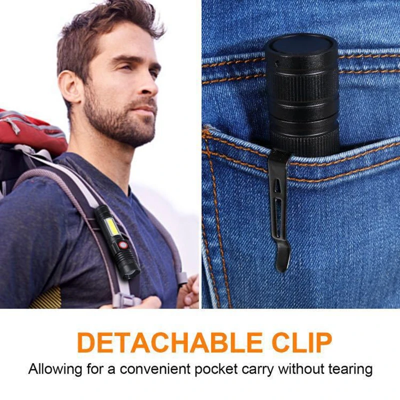 1. Портативный вспышка светильник с 4 светильник ing режимы: яркий, тусклый, cob бортовой светильник, cob бортовой светильник строб2. Изготовлен из высококачественного алюминиевого сплава, он прочный и подходит для ежедневного использования в течение длительного времени.3. Противоскользящий и водонепроницаемый дизайн (водонепроницаемый для повседневной жизни, не для подводного использования).4. С зажимом, легко закрепить в кармане, или закрепить на ремне или рюкзаке.5. Регулируемое фокусное расстояние, для различных целей, растягивается регулируемое фокусное расстояние.6. Подходит для: кемпинга, пеших прогулок, велоспорта, альпинизма, охоты, рыбалки, аварийной ситуации в автомобиле, активного отдыха и т. д.