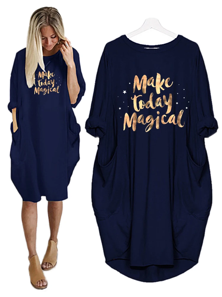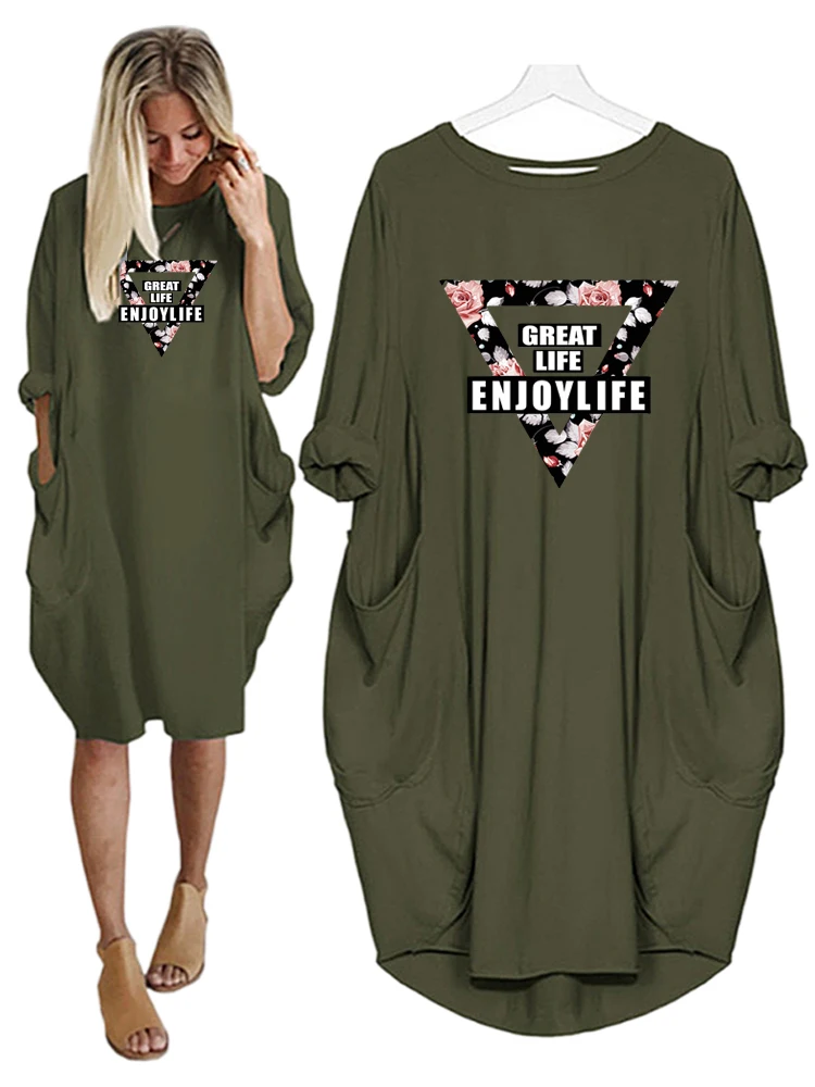 Женское платье с карманами, свободное винтажное платье с буквенным принтом, Повседневное платье с круглым вырезом и длинным рукавом, осень 2022, женская одежда, платье-рубашка