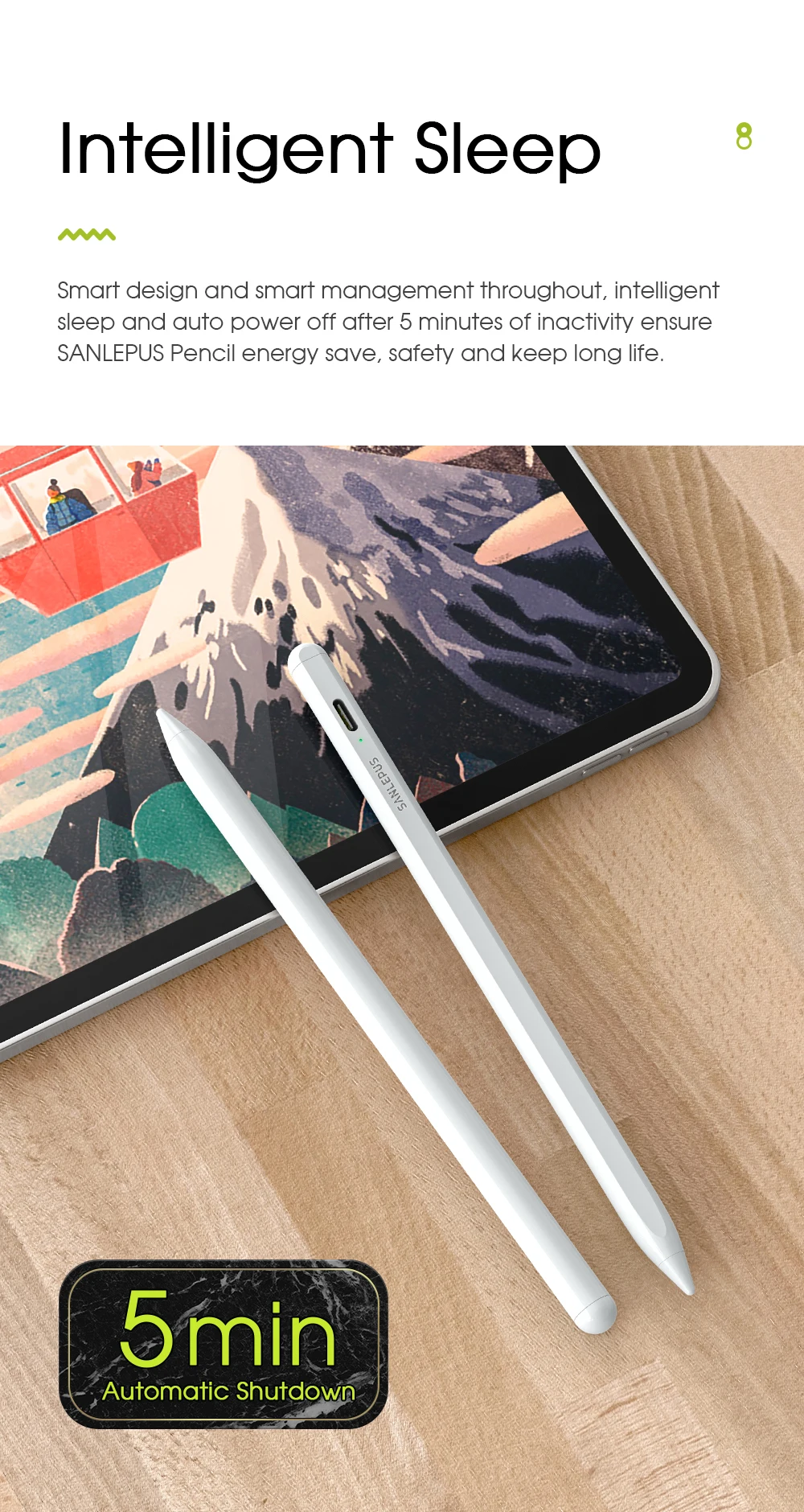 Стилус SANLEPUS для Apple, стилус для рисования, стилус для iPad Pro 11 12,9 2022 2018 2019 6th 7th mini 5 Air 3 с блокировкой ладони