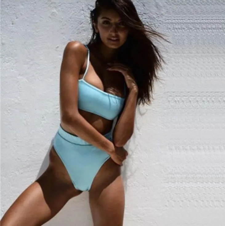Соблазнительные бикини, однотонное бикини с эффектом пуш-ап, 2021 дюйма, женский купальник с высокой талией, женское бикини