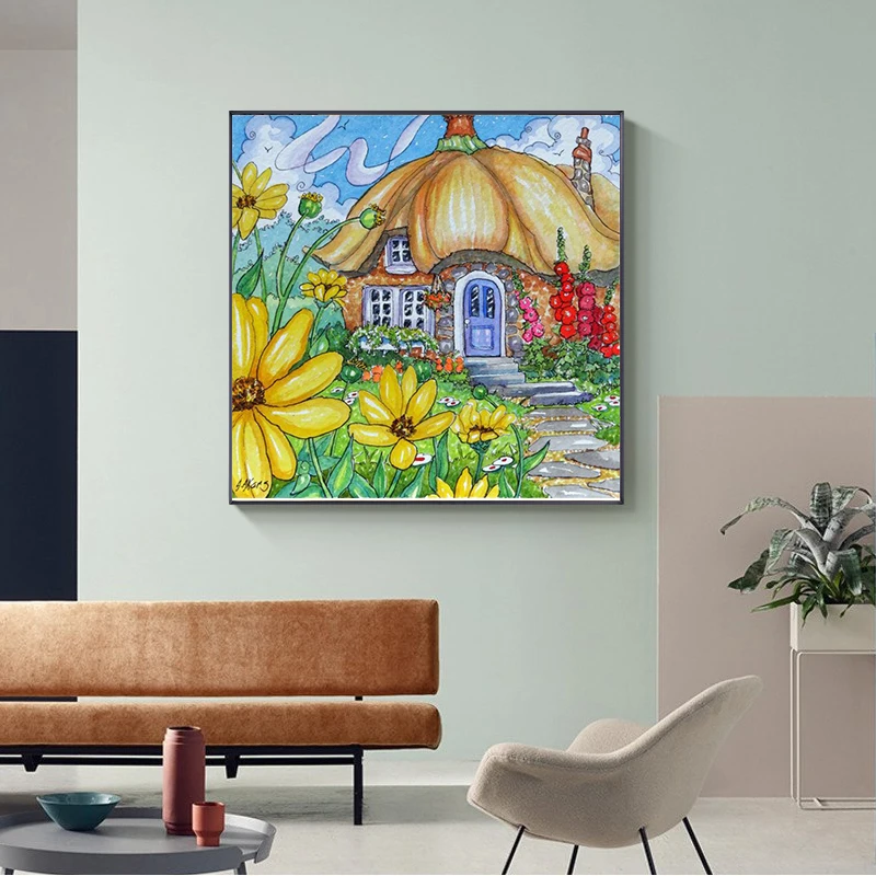 Украшение дома Алмазная вышивка крестиком на рисунке, коттедж вышивка пейзажа мозаичные камни в форме ромба круглый льняное настенное подарок ручной работы