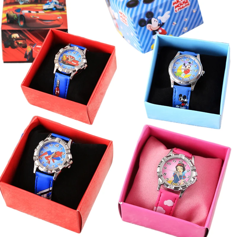 Детские часы с изысканным кожаным ремешком и изображением героев мультфильмов Молнии Маккуин Человек-паук Микки Белоснежки для студентов креативный подарок для детей
