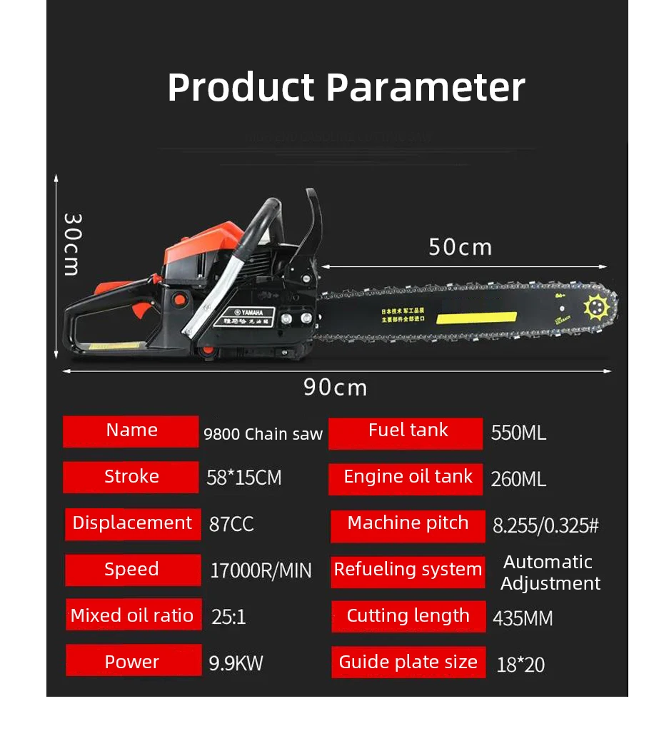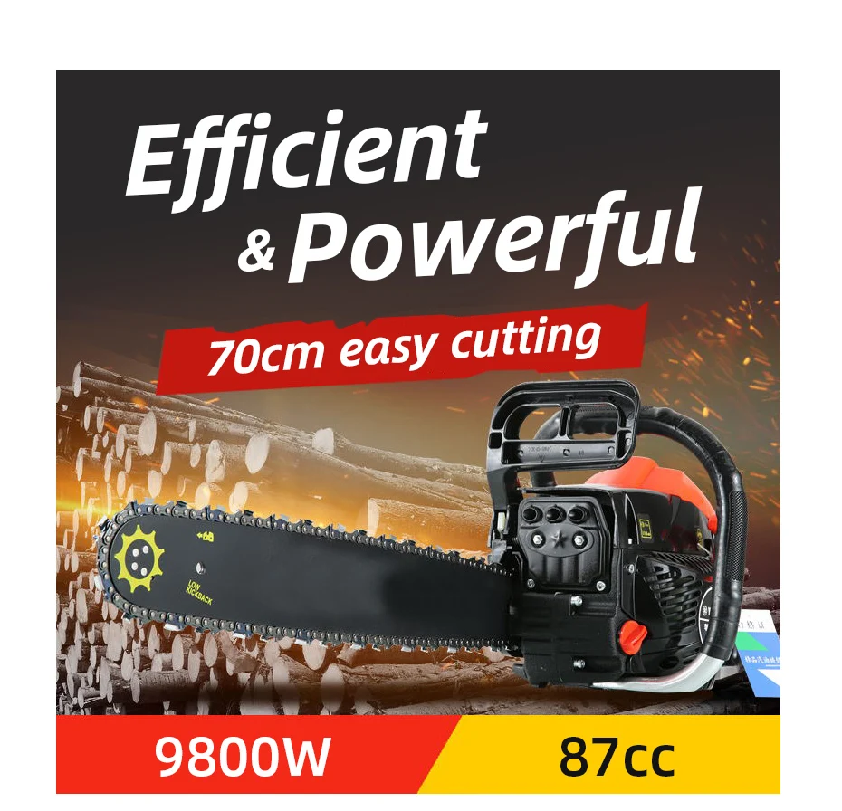 Бензопила регистрации пила 87CC 2-х тактный бензиновый бензиновая цепная пила для резки журнал цепных пил Мощность инструменты 9800 Вт высокой мощности-Мощность