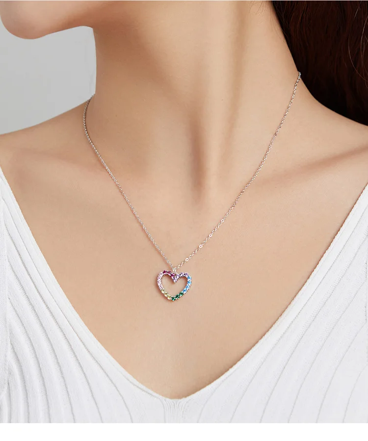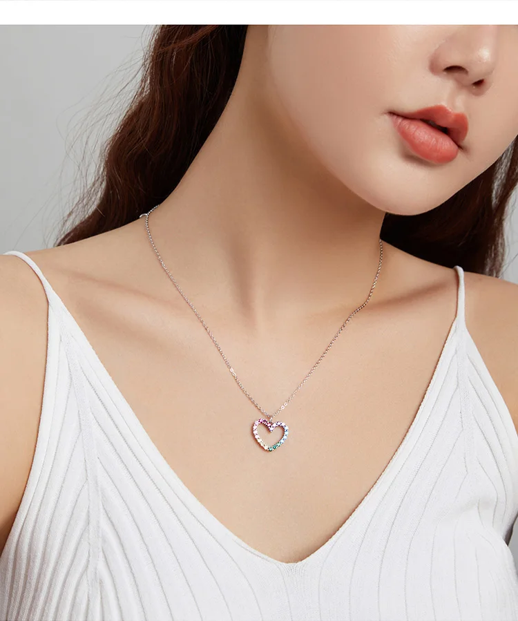 Женское ожерелье из серебра 925 пробы, с разноцветным любовным сердцем