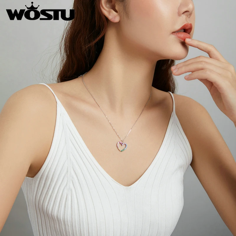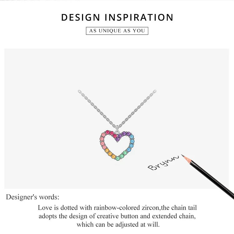 Женское Ожерелье с радужным сердечком Bamoer, ожерелье из стерлинго...