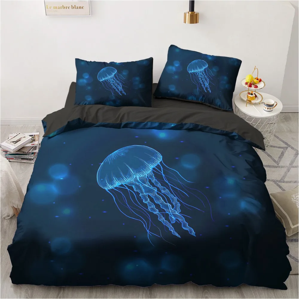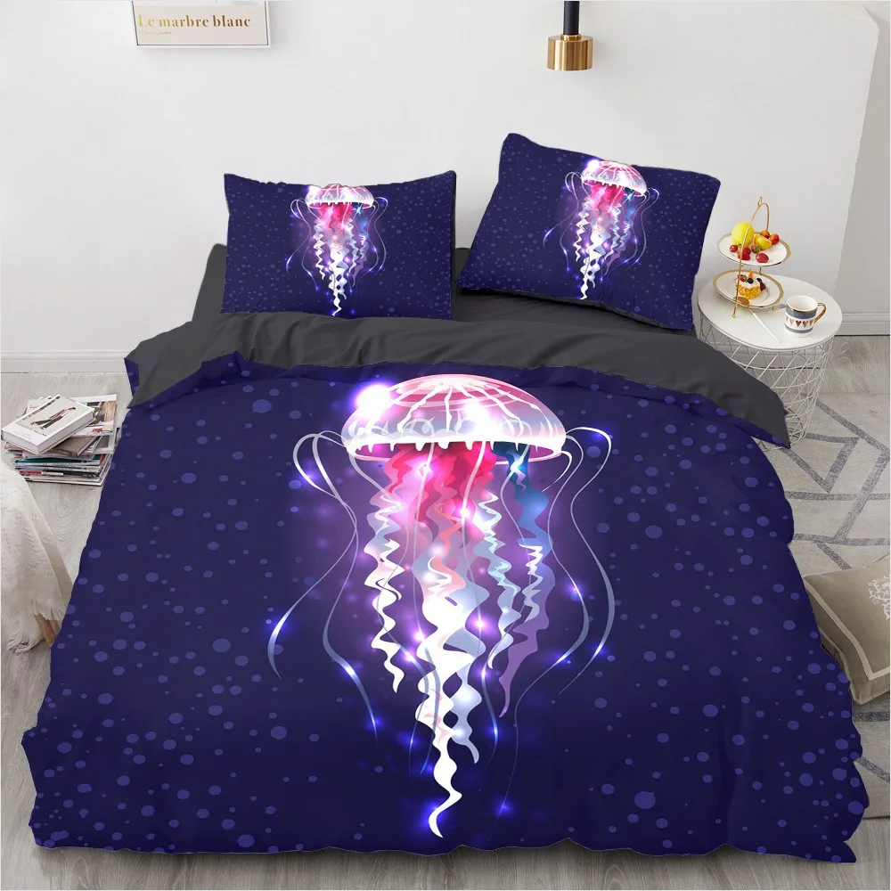 Наборы пододеяльников Jellyfish, черное удобное покрывало, подушка, комбинация, полноразмерное постельное белье с изображением королевы, супер-короля, двух размеров, с 3D рисунком животных