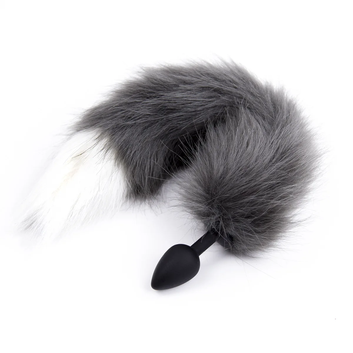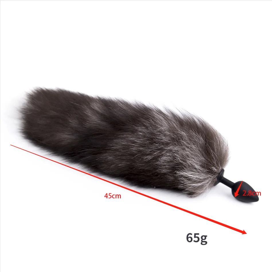 Мягкий металлическийСиликоновый анальный фаллоимитатор с лисьим хво...