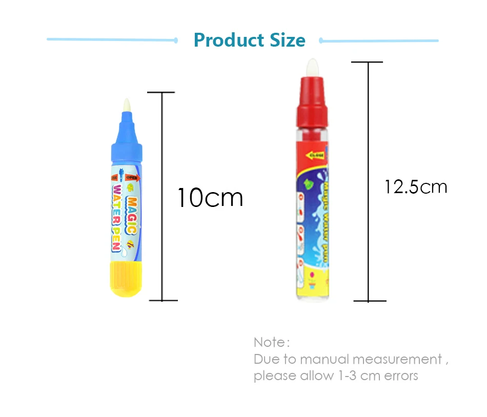* Ручка заполнена водой, вы можете свободно рисовать на холсте;* Там, где рисуется ручка, почерк почерка появляется немедленно;* С испарением водяных пятен, почерк исчезл, холст вернулся к оригинальному цвету, ребенок может продолжать создавать* Скорость запотевания воды зависит от сухости окружающей среды, обычно 4-6 минут)