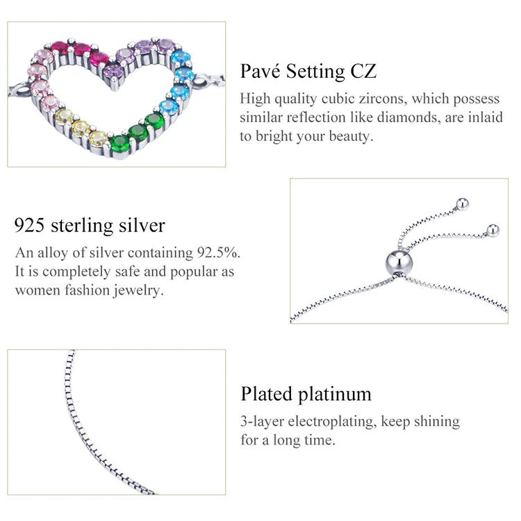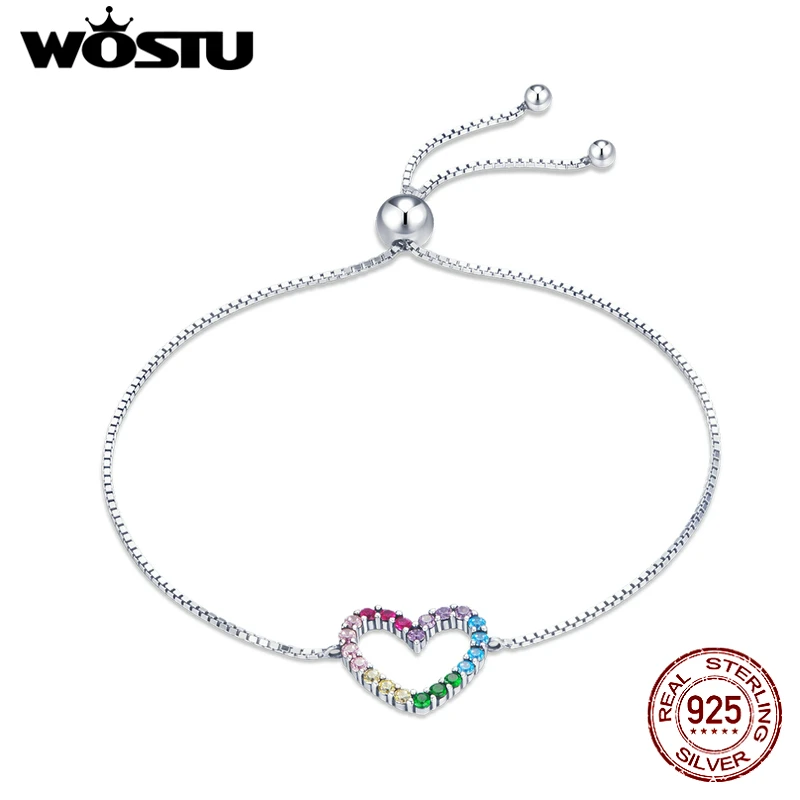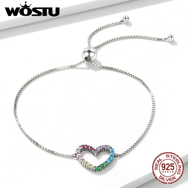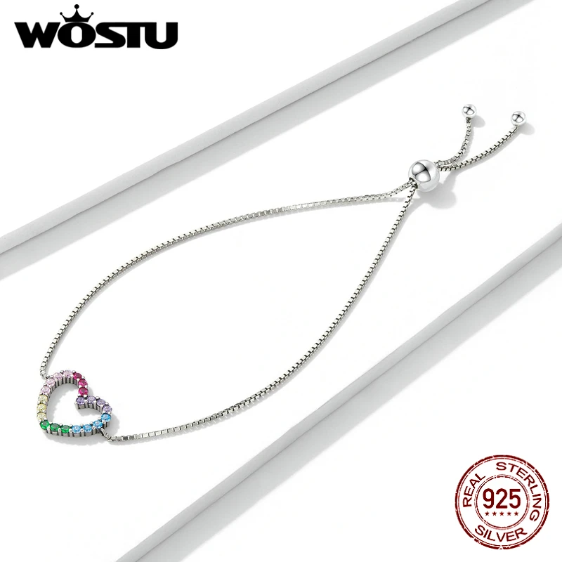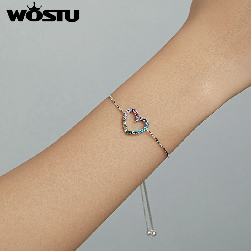 WOSTU 2021 925 стерлингового серебра браслеты Любовь; Доступны все цвета радуги CZ регулируемый браслет-цепочка для женщин, хорошее ювелирное изделие, настоящее DXB216