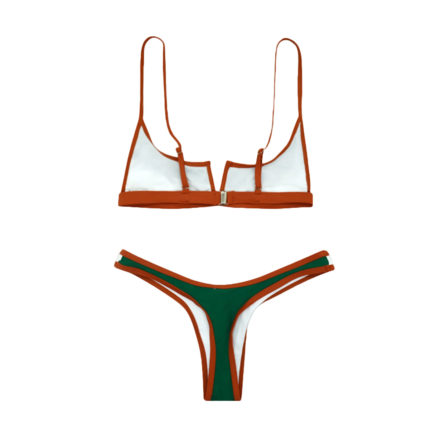 Женский комплект бикини, летний сексуальный модный костюм контрастных цветов с вышивкой, кофта и трусы с низкой талией, женский купальный костюм