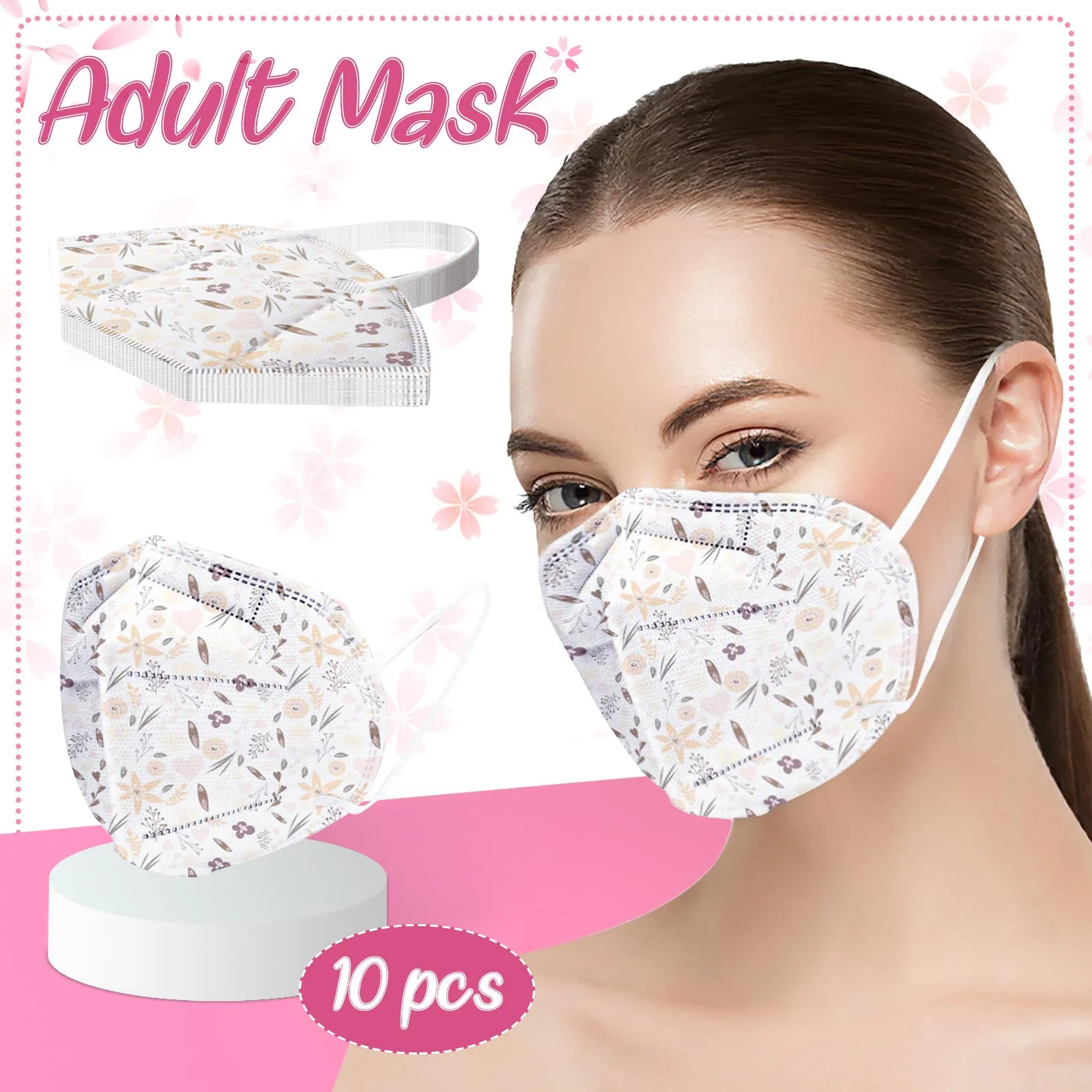 10 шт. взрослых KN95 маска Цветочный принт 5 слоев Фильтр Защитный ...