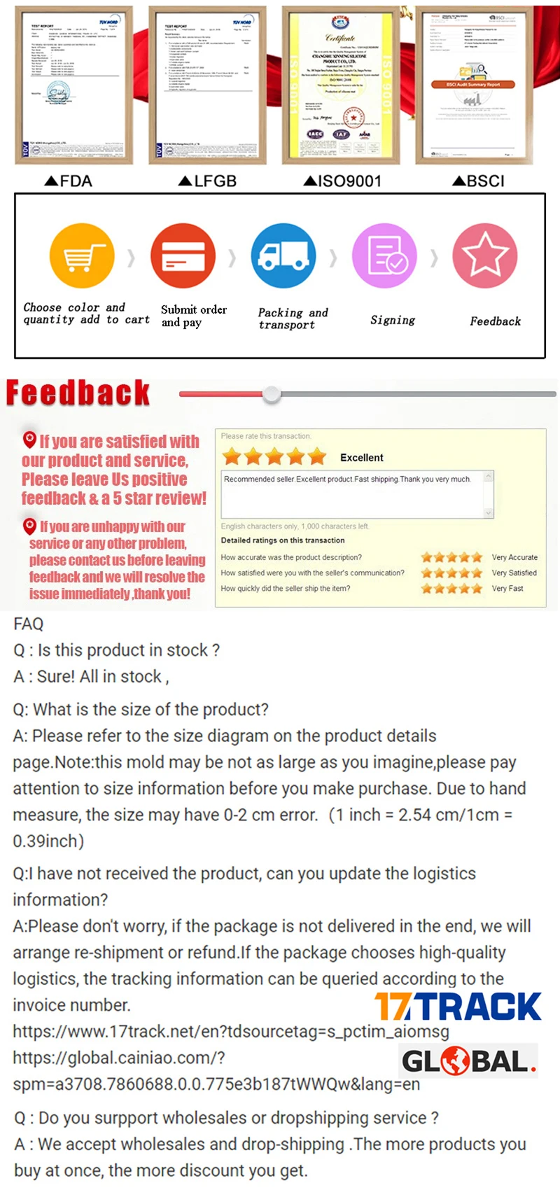 -Используйте наши уникальные Силиконовые формы для Фруктового мороженого, чтобы сделать изысканные десерты, чтобы развлекать нашу семью и друзей. Я уверен, что эта уникальная кухня удивит ваших гостей и подарит вам вечерние ощущения. -Материал: съедобный силикон -Сертификация: CE / EU,FDA,EEC,LFGB,SGS,CIQ -Характеристики: экологически чистый, безопасный для пищевых продуктов, мягкий, антипригарный, многоразовый, легко моется -Цвет: случайный -Размер формы: пожалуйста, обратитесь к таблице размеров формы (Уважаемый покупатель, пожалуйста, обратите внимание на размер продукта перед заказом.) -В комплект входит: 1 комплект