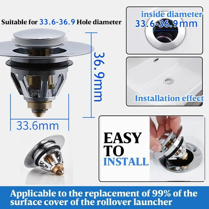 【Легко установить 】Любой может установить всплывающее слив из-за его простой структуры, никаких инструментов не требуется, просто выньте старый и вставьте ядро отскока, чтобы завершить его.Материал: нержавеющая сталь, латуньРазмер: