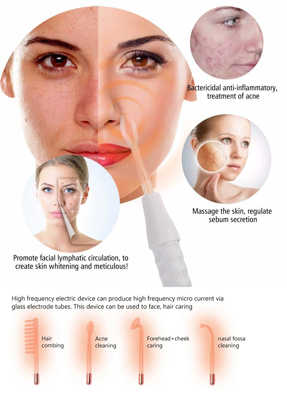 Высокочастотная Электротерапия использует тезис о том, что высокочастотное электричество течет для получения тепла и ультрафиолета, таким образом, строгий и расширяющийся периферический кровеносный сосуд человеческого тела, ионизирующий кислород в воздухе для производства озона, И улучшение кровообращения с антибактериальным и антифлогистическим эффектом.