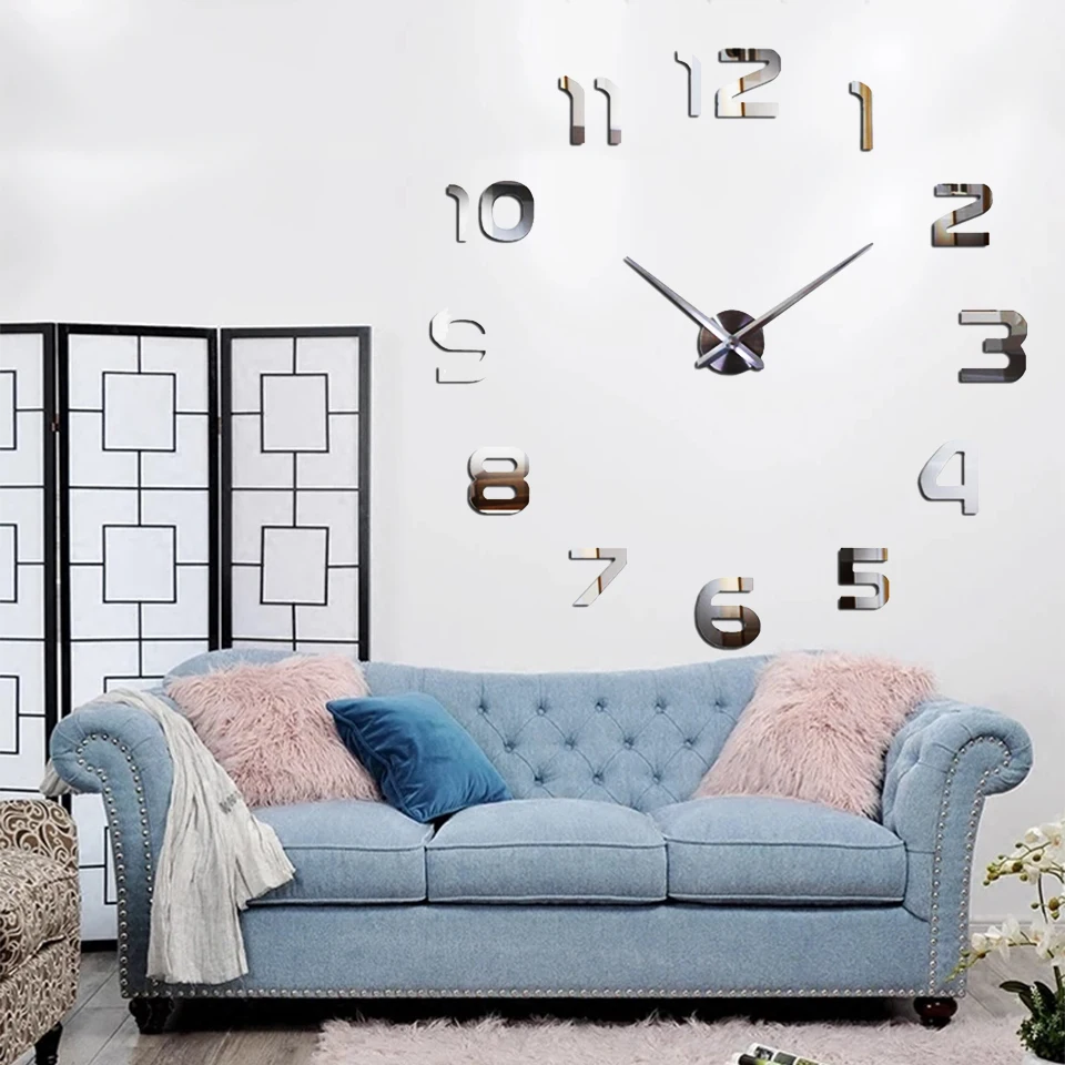 Новинка, 3D настенные часы сделай сам, акриловое металлическое зеркало, украшение для дома, очень большое, 130 см x 130 см