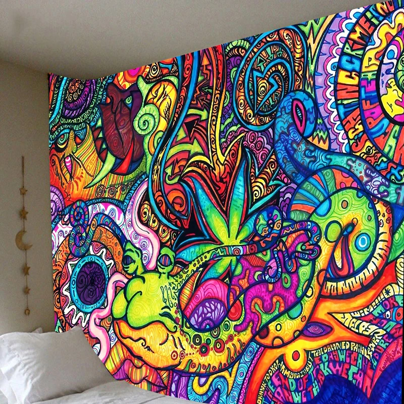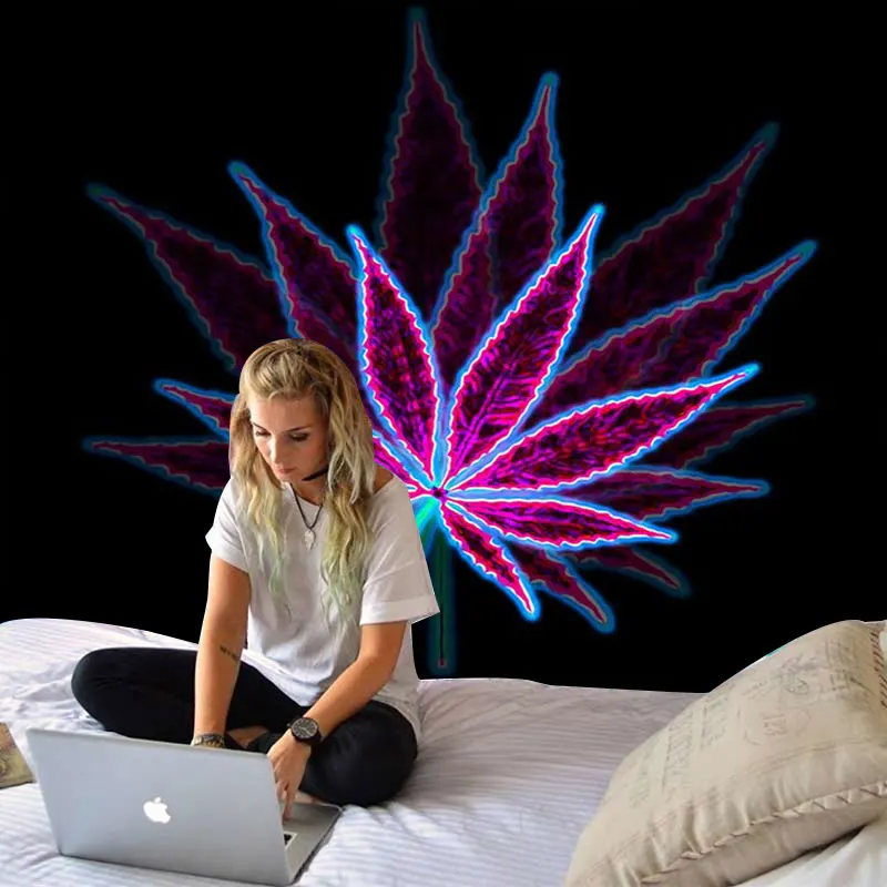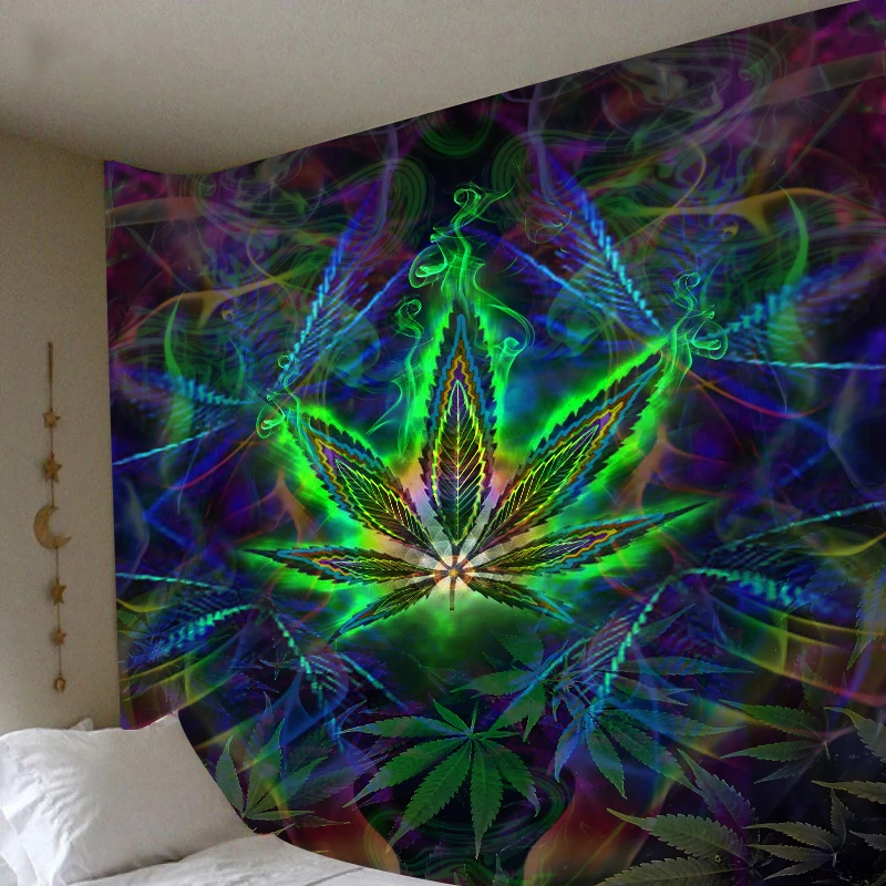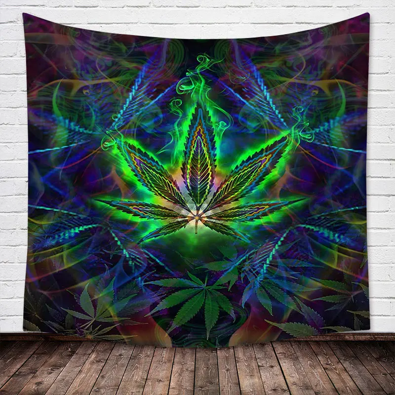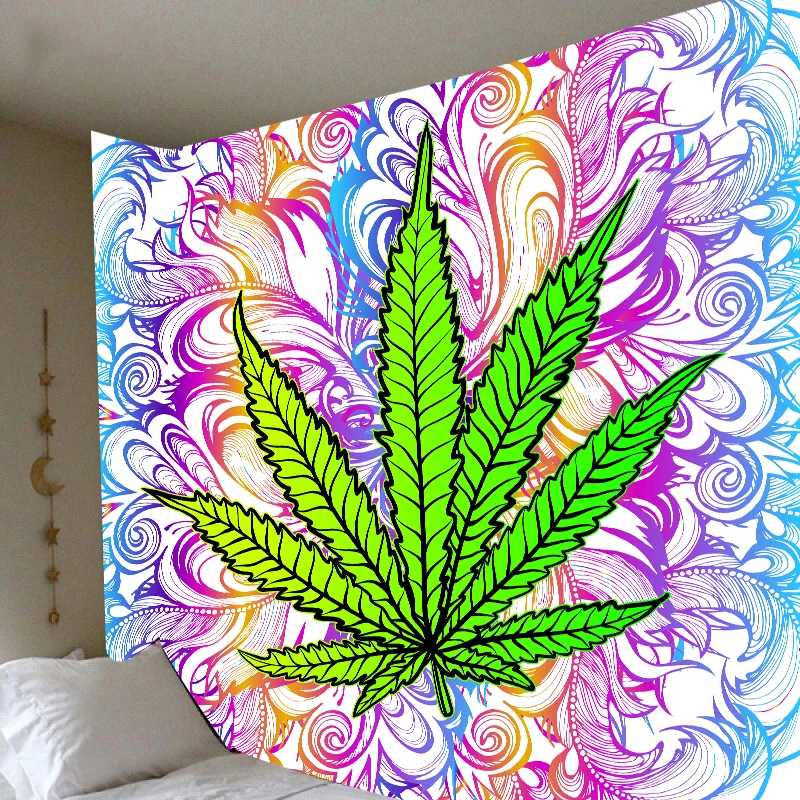 Маленький психоделический настенный гобелен с кленовыми листьями, гобелен в стиле Trippy, богемные Гобелены с мандалой, настенный тканевый ковер, Потолочный декор для комнаты