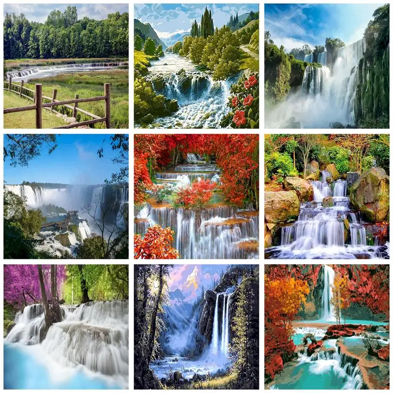 PhotoCutom масло Краски по номерам Наборы водопад 60x75cm Краски ing по номерам на холсте Пейзаж выполненные DIY пере Краски Инж