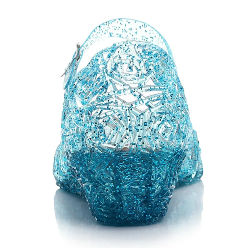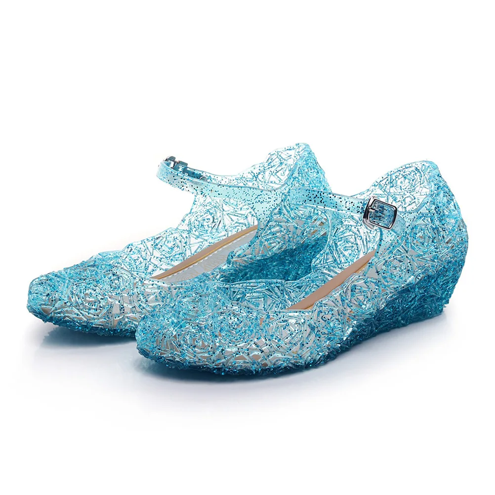 Красивые детские летние сандалии с кристаллами Замороженная Принцесса Айша туфли на высоком каблуке для косплея вечерние танцевальные туфли красивые желеобразные цвета