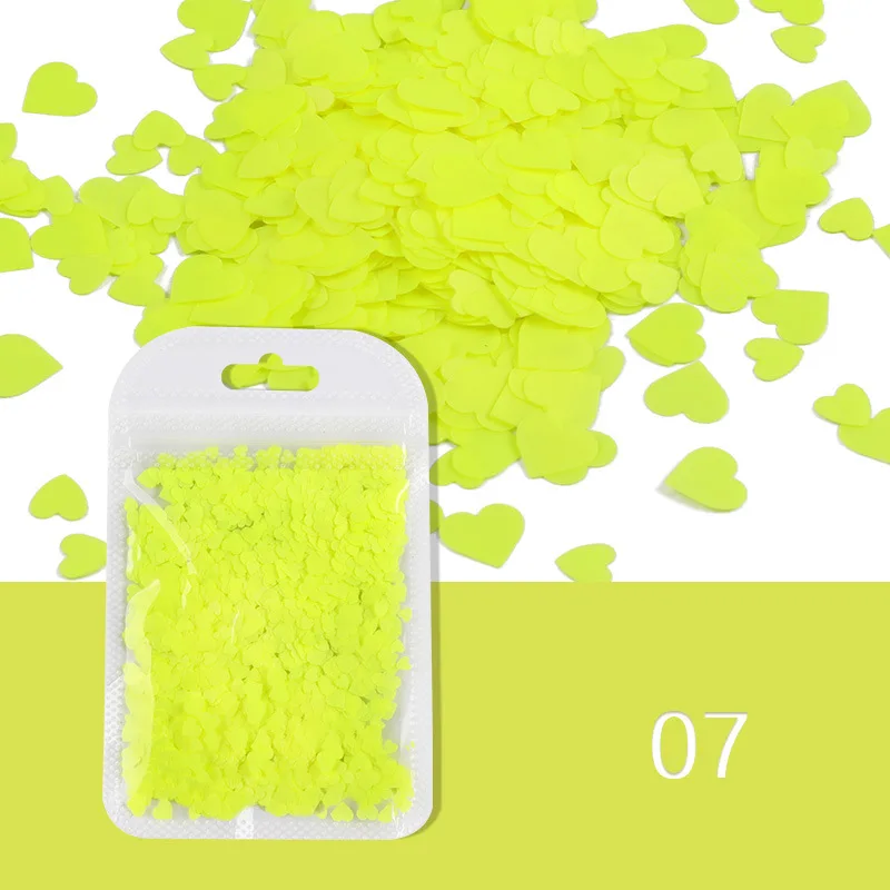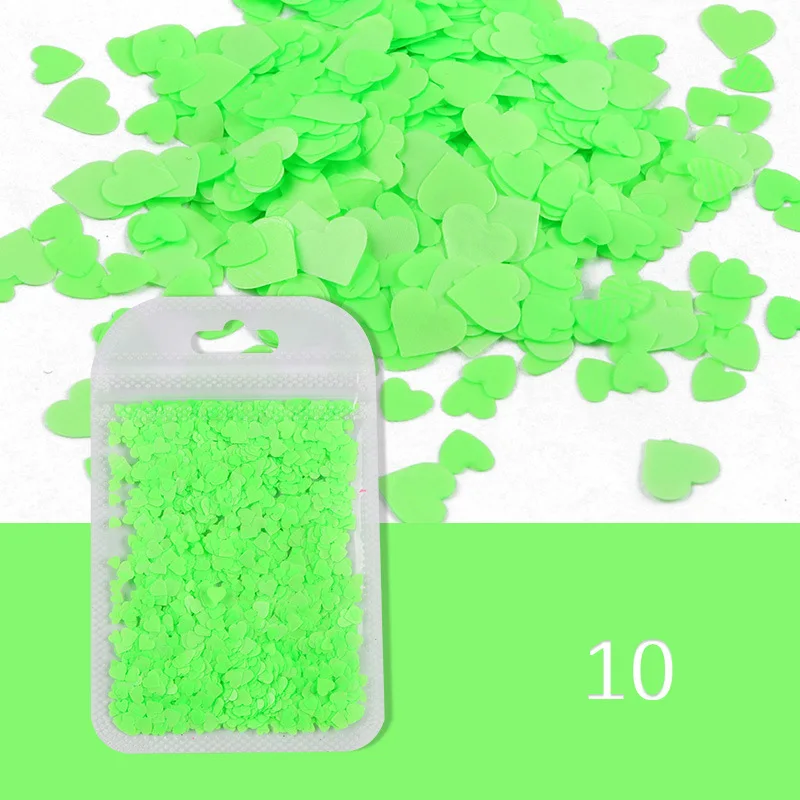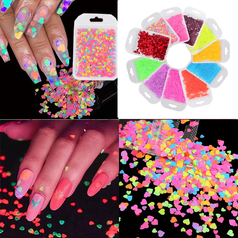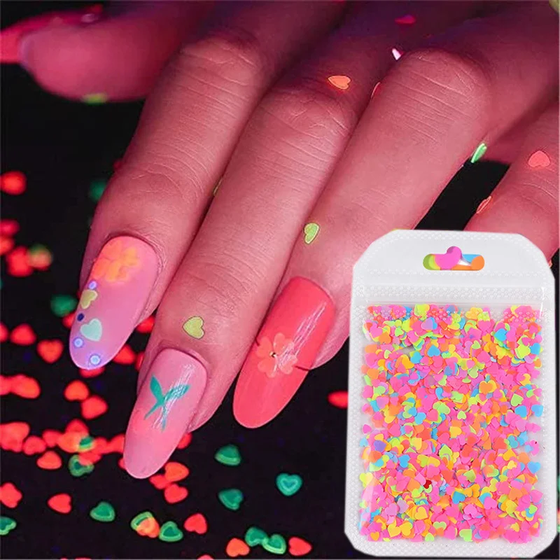 Новый гвоздь в форме сердца блестки 3D смешанный цвет маникюрный Декор неоновые, флюоресцентные хлопья кусочек лака для ногтей блестящие аксессуары для ногтей