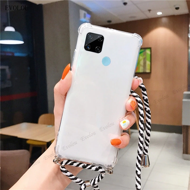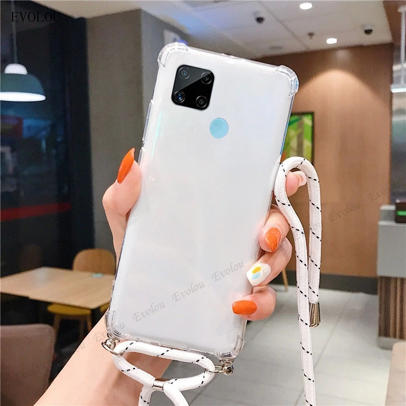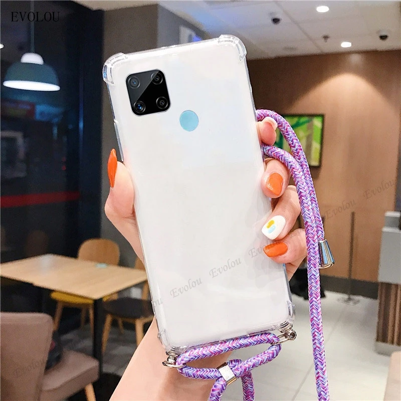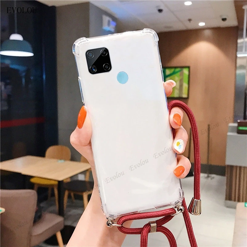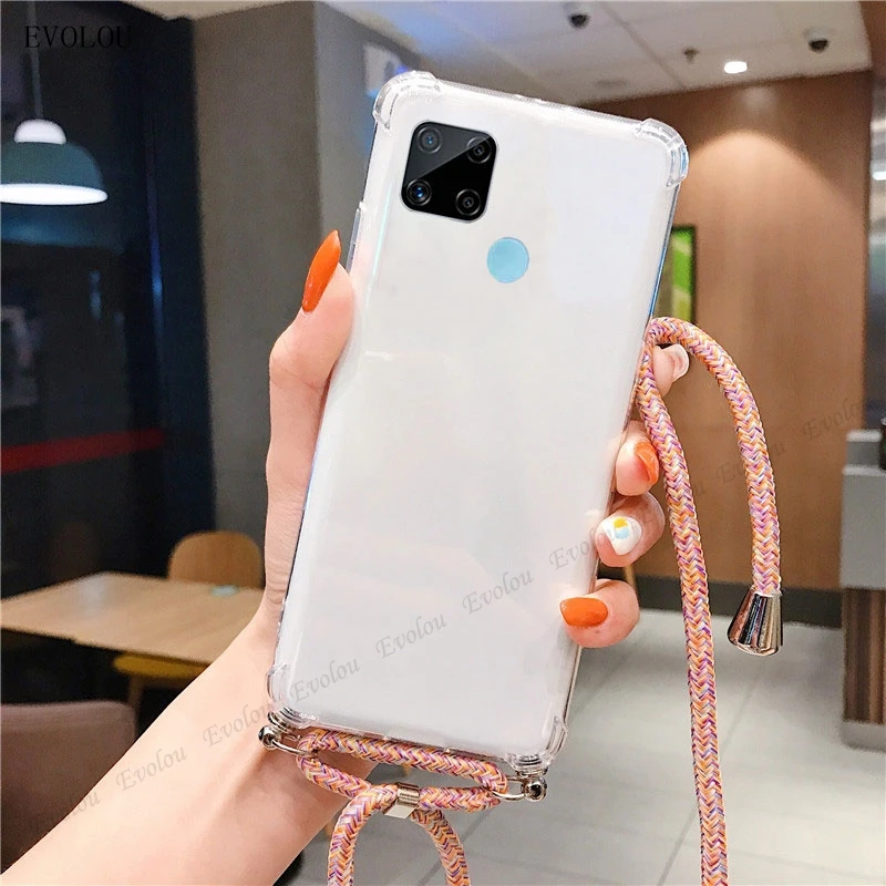 Кросс-боди шнур ремешок чехол для realme 8 pro C21 C20 F19 Pro Plus A54 5G противоударный прозрачный мягкий силиконовый чехол на заднюю панель