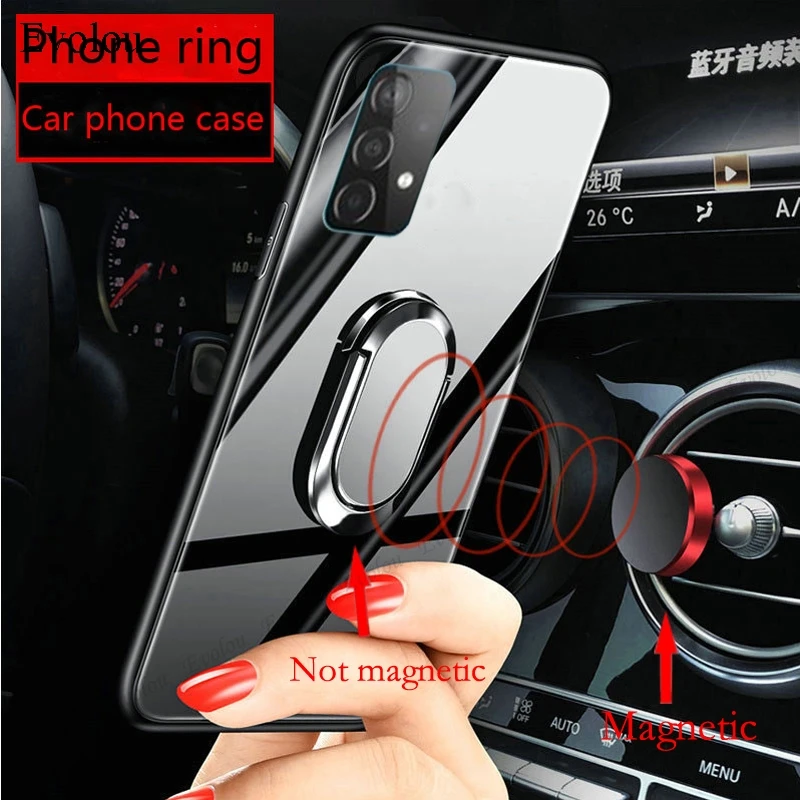Чехол из закаленного стекла для телефона Samsung Galaxy A52, A72, A12, A42, чехол-подставка с магнитным кольцом для Samsung A31, A81, A90, A70, A50