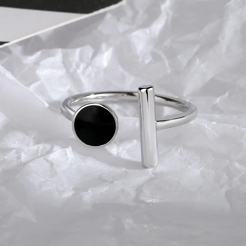 CIAXY 925 стерлингового серебра капельного глазури черные кольца для женщин с геометрическим рисунком с дизайном в виде регулируемое кольцо в стиле панк; Бижутерия