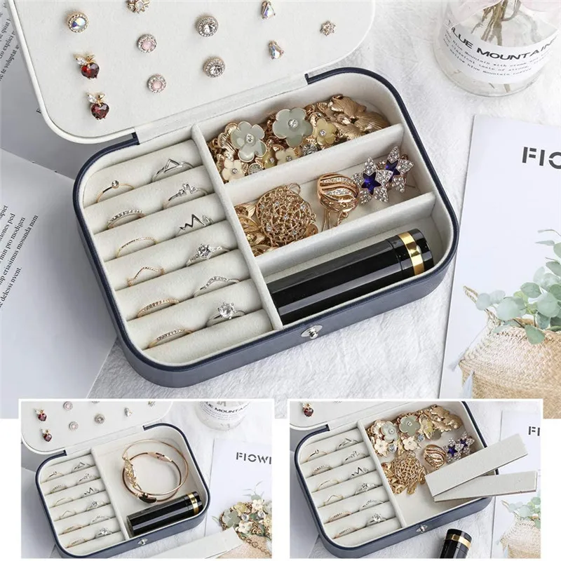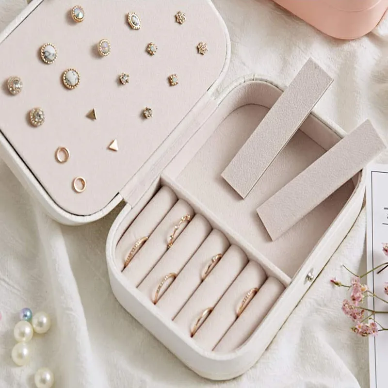 Портативная шкатулка для ювелирных украшений, чехол для хранения ожерелья, шкафчик, витрина для путешествий, кожаный чехол для ювелирных украшений на молнии