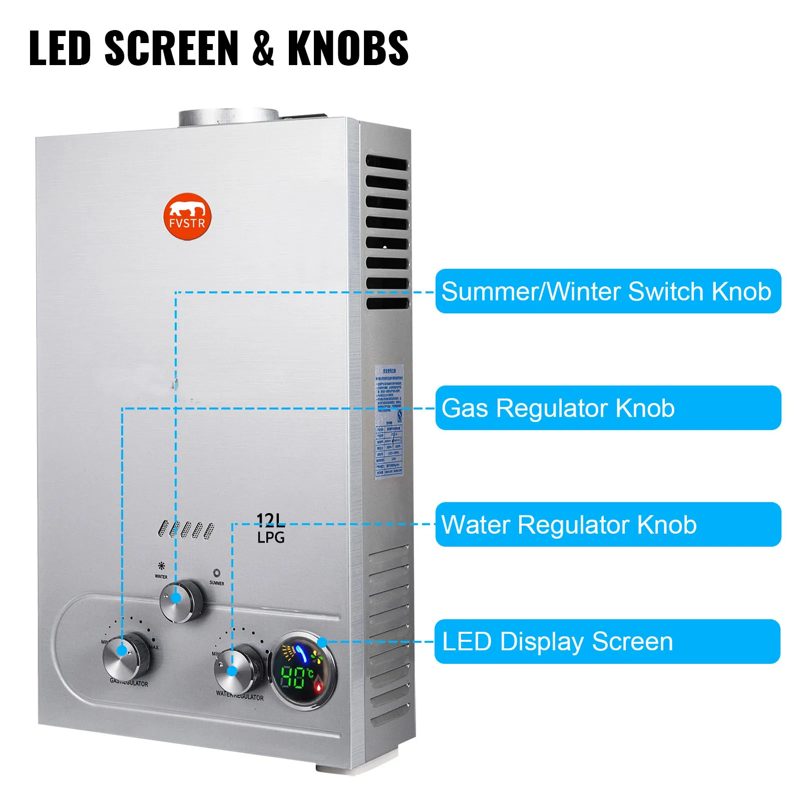 Газовый водонагреватель FVSTR-Homse, 12 л, 3,2 галлона, пропан, сжиженный газ, без бака, мгновенный нагрев воды, Душ