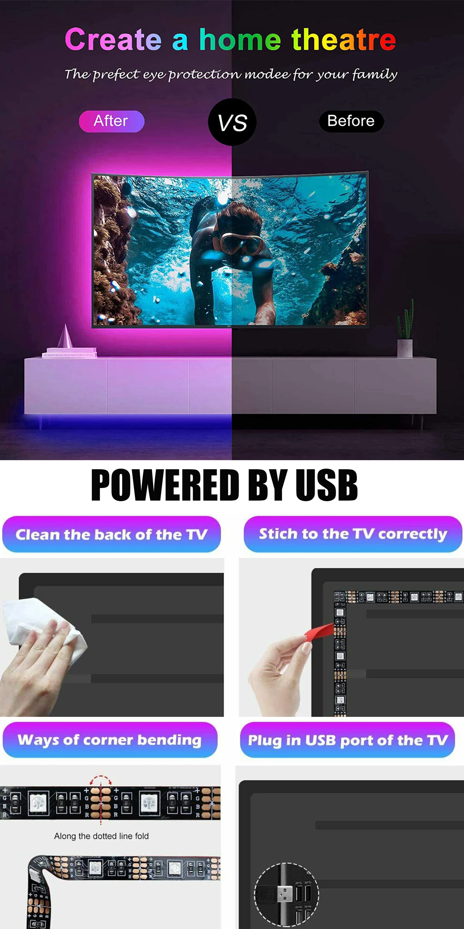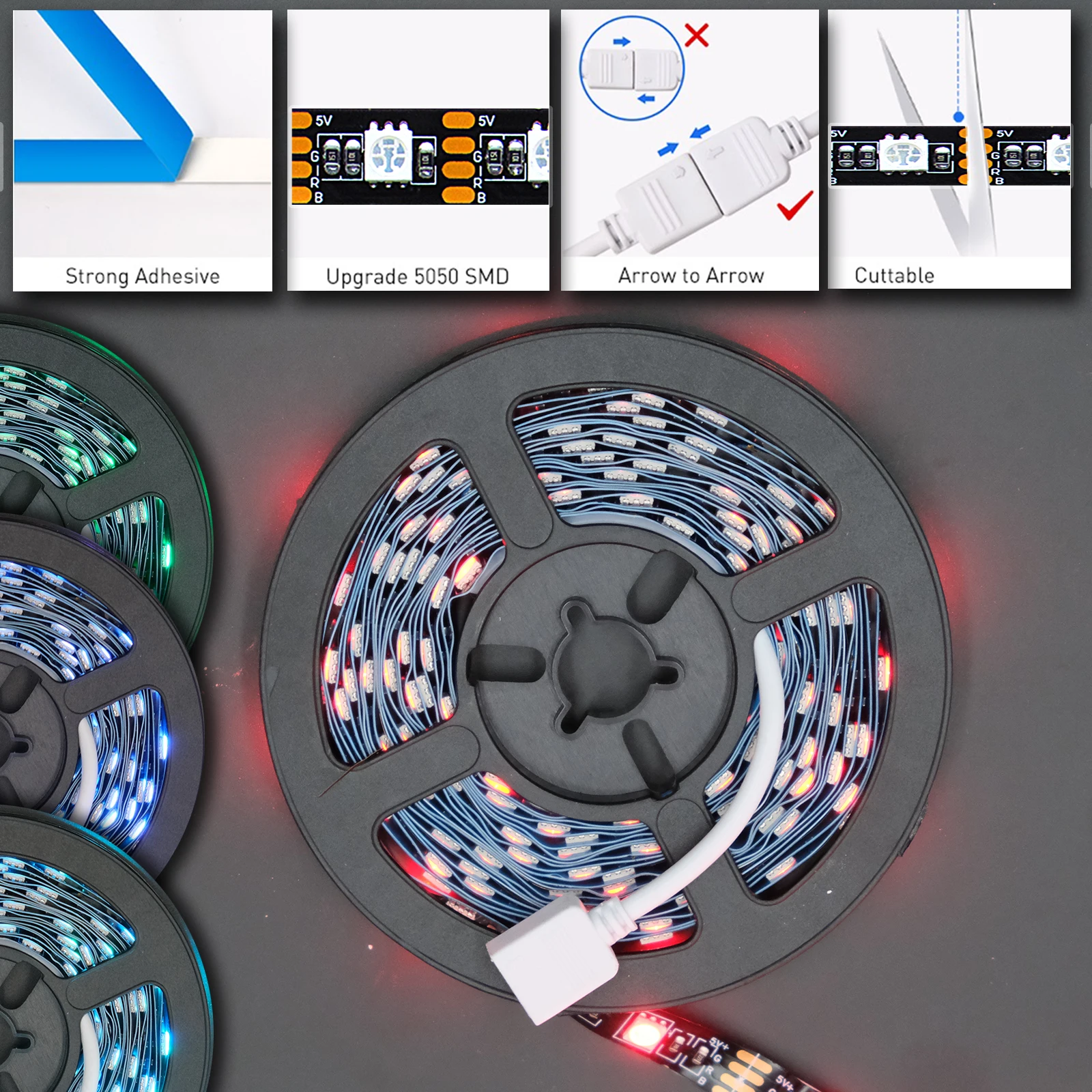 Светодиодные ленты Тип: светодиодный ленточный светильник Tuya USB RGB Водонепроницаемый Тип: IP65 или IP20 Тип светодиодный: SMD 5050 Количество СВЕТОДИОДНЫЙ: 30 светодиодный s/m Светильник Цвет: разноцветный "Красный-зелёный-желтый Угол луча: 120 градусов Напряжение: DC 5V 1A (0,5 м/1 м),5V 2A(2 м/3 М/4 м/5 м) Температура хранения. : -40 ~ 80 градусов Цельсия Рабочая температура. : -25 ~ 60 градусов Цельсия Светодиодный контроллер Напряжение: 5 В постоянного тока Приложение: Smart Life,TUYA Поддержка мобильных устройств: Android/IOS Система поддержки: Amazon Alexa, Google Assistant, IFTTT Управление: Голосовое управление/кнопочное управление/пульт дистанционного управления с приложением/24-клавишный ИК-пульт дистанционного управления Посылка 1 * RGB Светодиодные ленты светильник (0,5 м/1 м/2 м/3 м/4 м/5 м на выбор) 1 * USB светодиодный контроллер Tuya 1 * 24Key ИК-пульт дистанционного управления (батарея не входит в комплект)