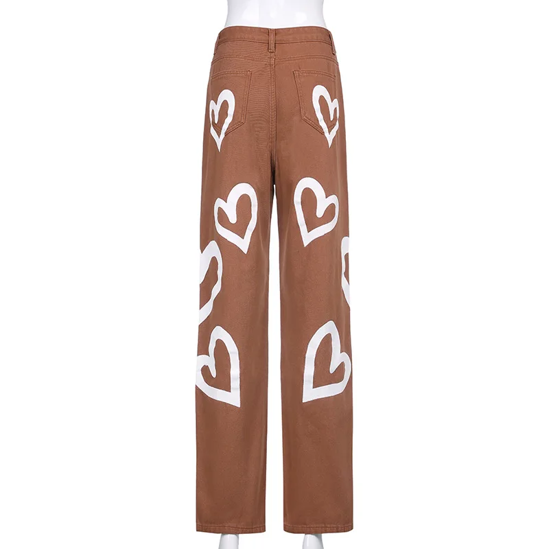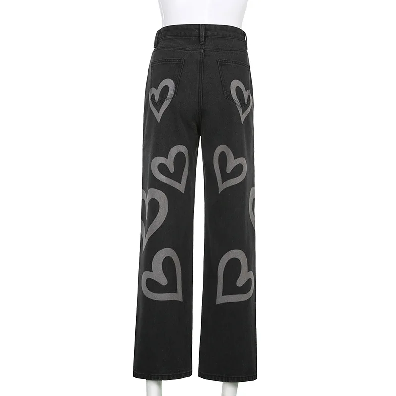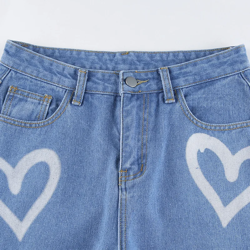 Женские джинсы в стиле Харадзюку С принтом сердца, джинсовые брюки ...