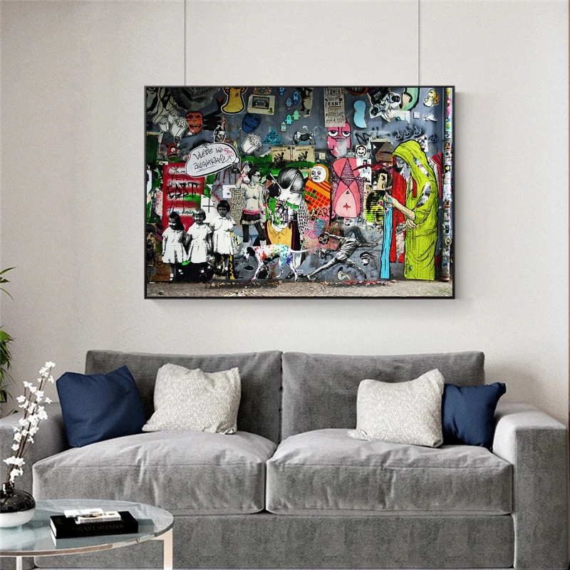 Уличное граффити, художественная живопись на холсте, абстрактный см...