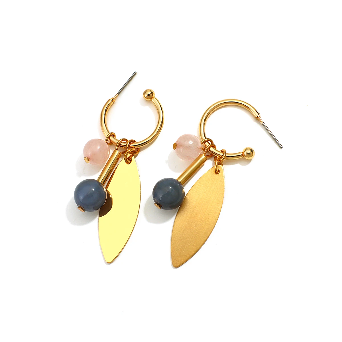 Особенность: Богемные нестандартные металлические золотистые серьги-кольца | Модные геометрические серьги с бусинами и листьями | Новые модные аксессуары | 2021 Лучшие популярные серьги | Женские украшения