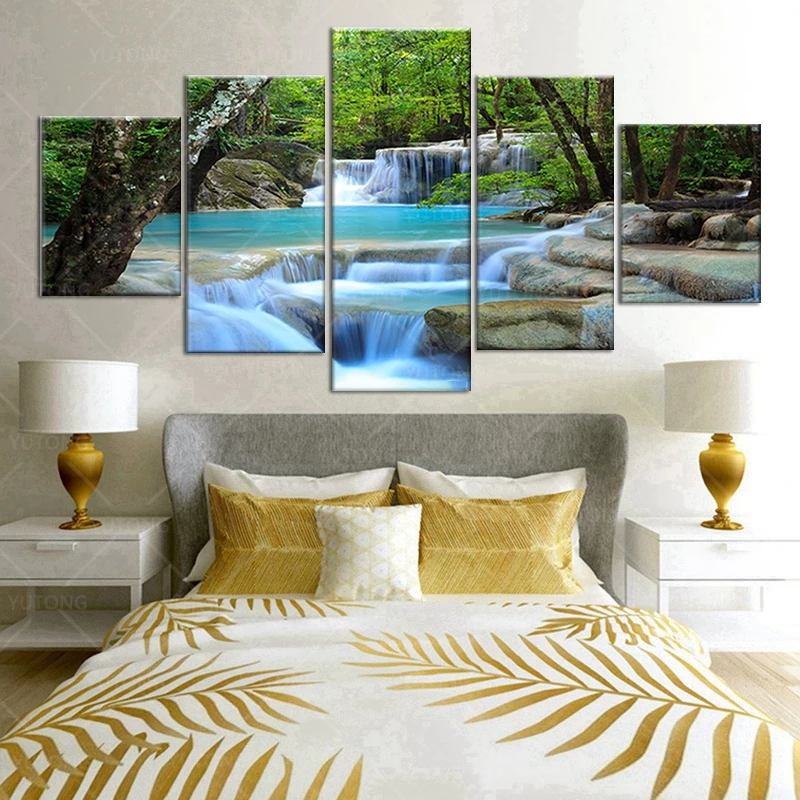 Ландшафтные картины HD напечатанные на холсте Декор 5 шт. зеленый л...