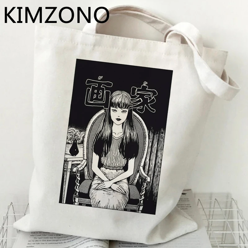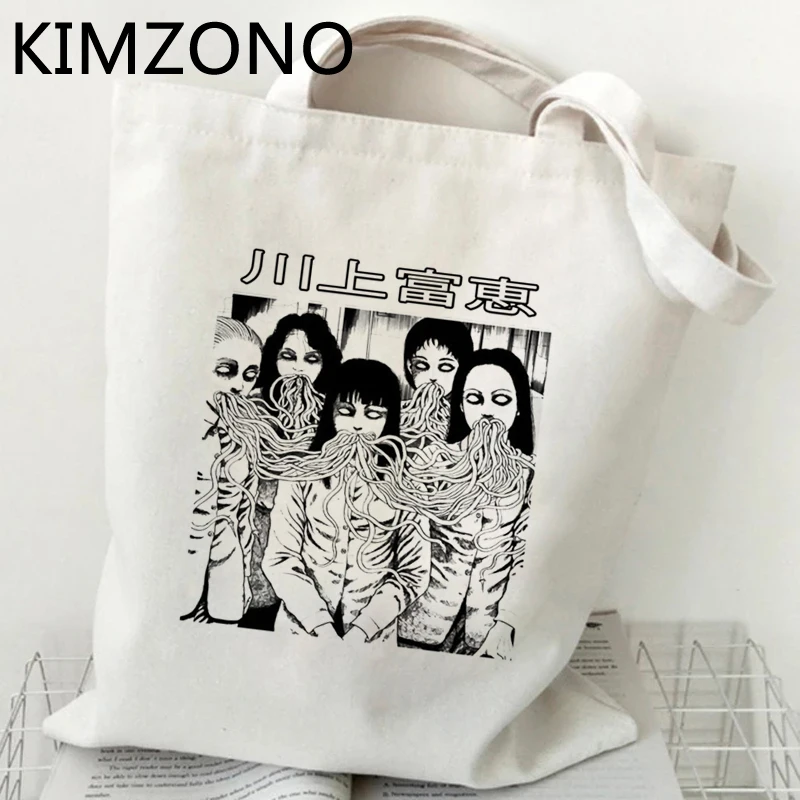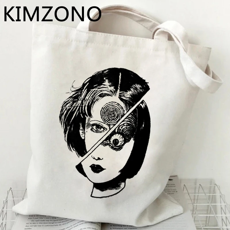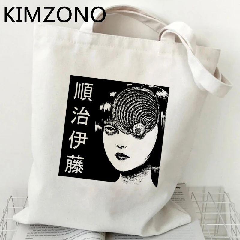 Сумка для покупок Junji Ito, сумка из переработанного материала, сумка-шоппер, хлопчатобумажная Холщовая Сумка, тканевая сумка-шоппер, сумка-шоппер