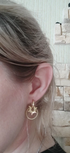 Очень милые и симпатичные серёжки. Единственный минус для меня - пока застегиваю, у меня то колечко, то звездочка выпадет. С первого раза не всегда выходит. Но возможно это просто я такая криворукая)