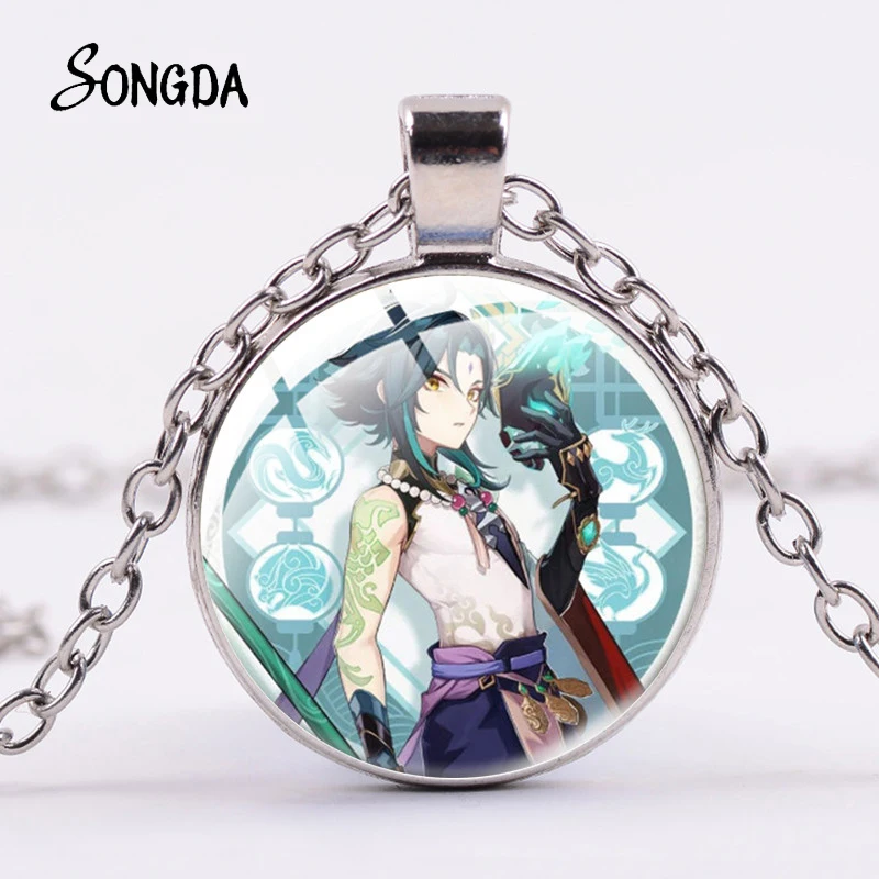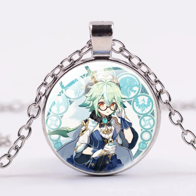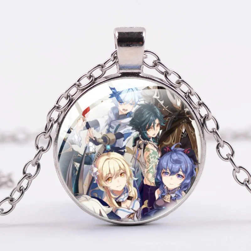 Ожерелье с подвеской из японского мультфильма Genshin Impact, стеклянное креативное ожерелье с бумажным узором и кристаллами для модных подарков