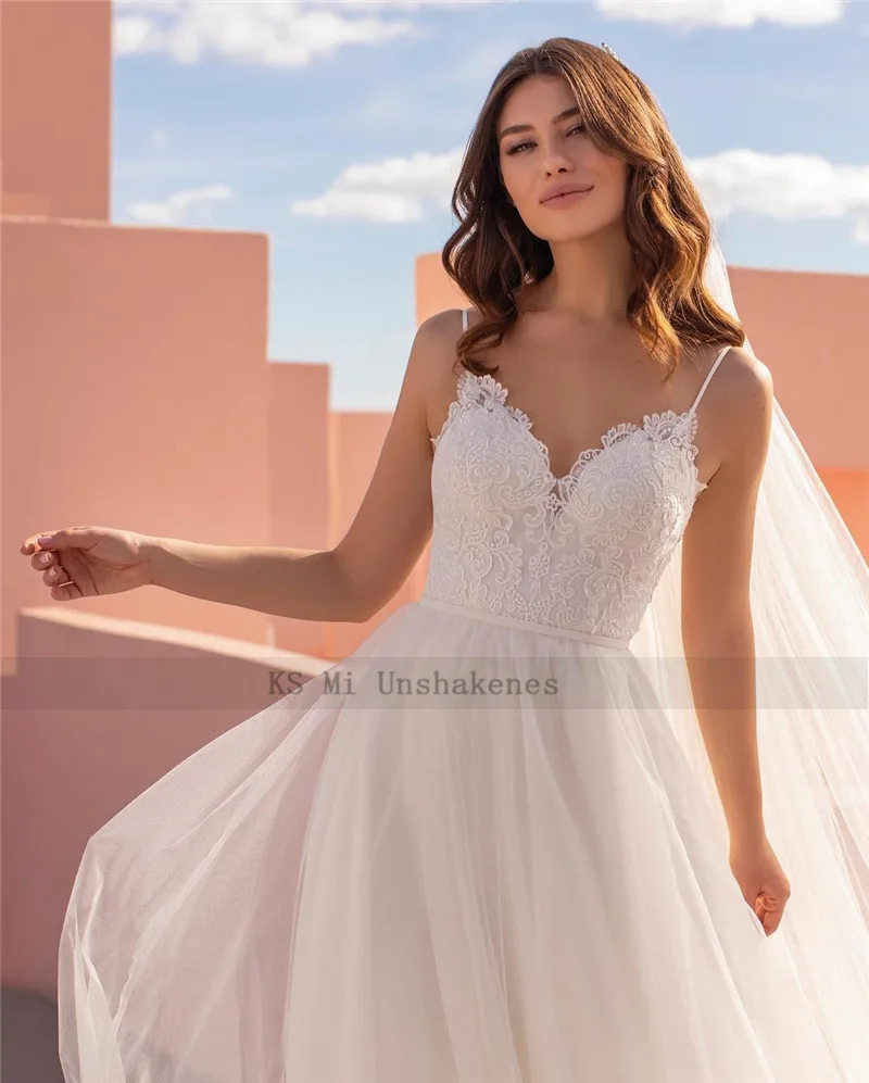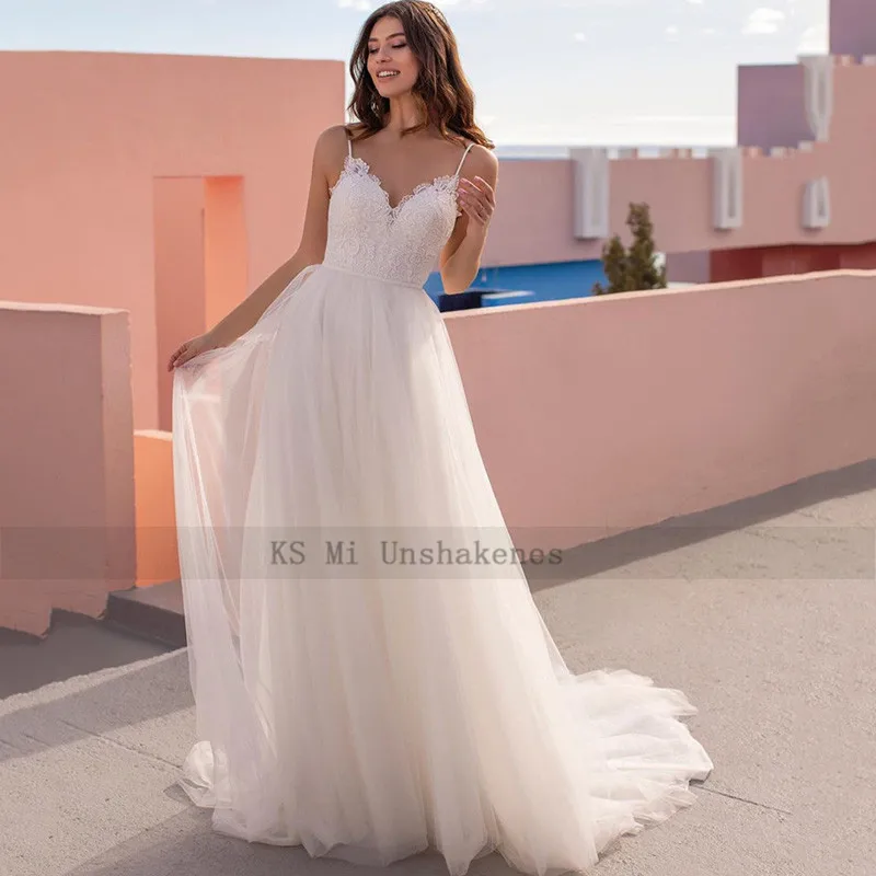 Простое винтажное свадебное платье, корейское платье невесты из Турции, кружевные пляжные свадебные наряды на бретелях-спагетти с открытой спиной, трапециевидного силуэта, 2021
