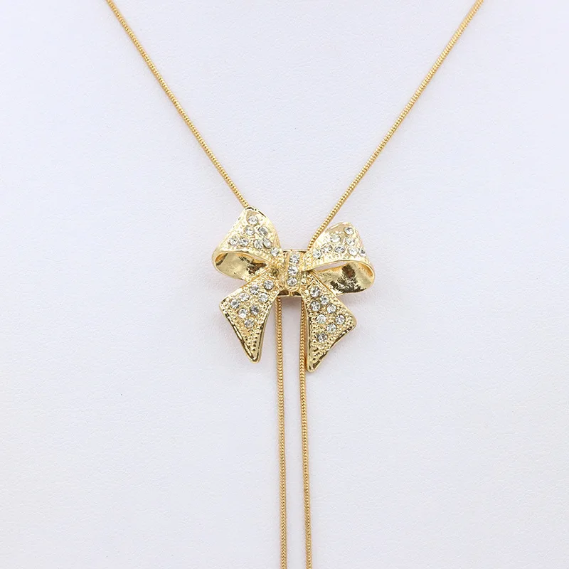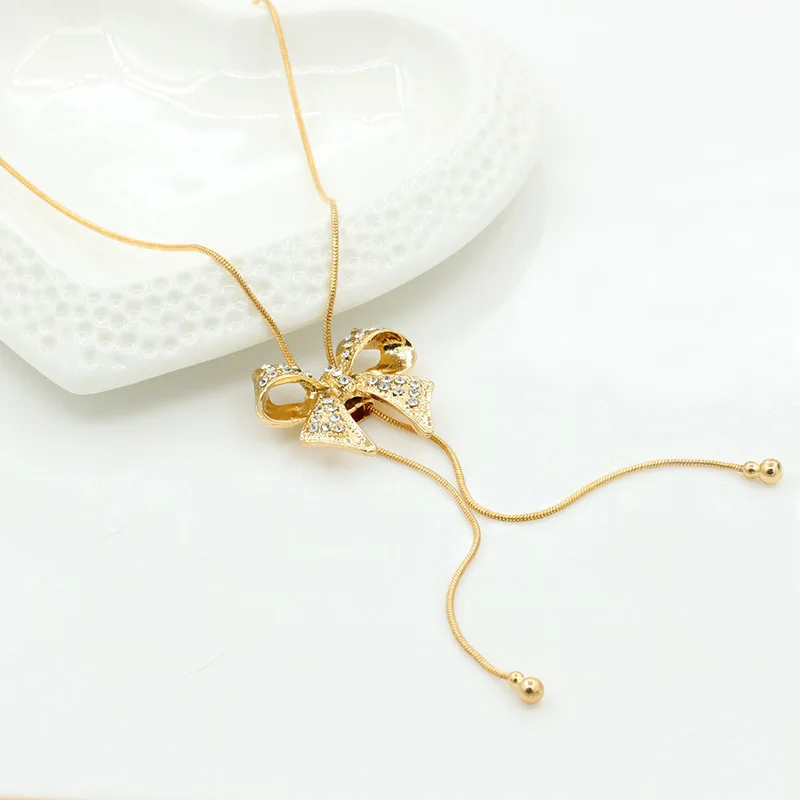 Модные Простые бантом кулон, ожерелье, элегантные женские Роскошные ААА кубического циркония золото Цвет ожерелье очаровательной леди, ювелирное изделие для помолвки