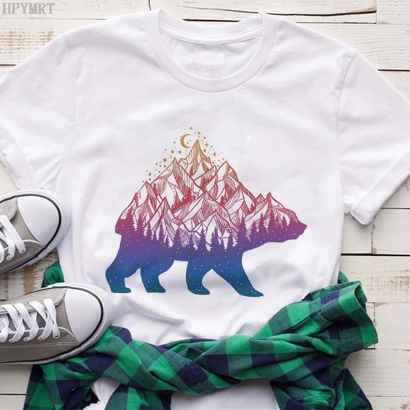 Летние топы; Эстетическая Футболка с принтом горы; Женская Винтажна...