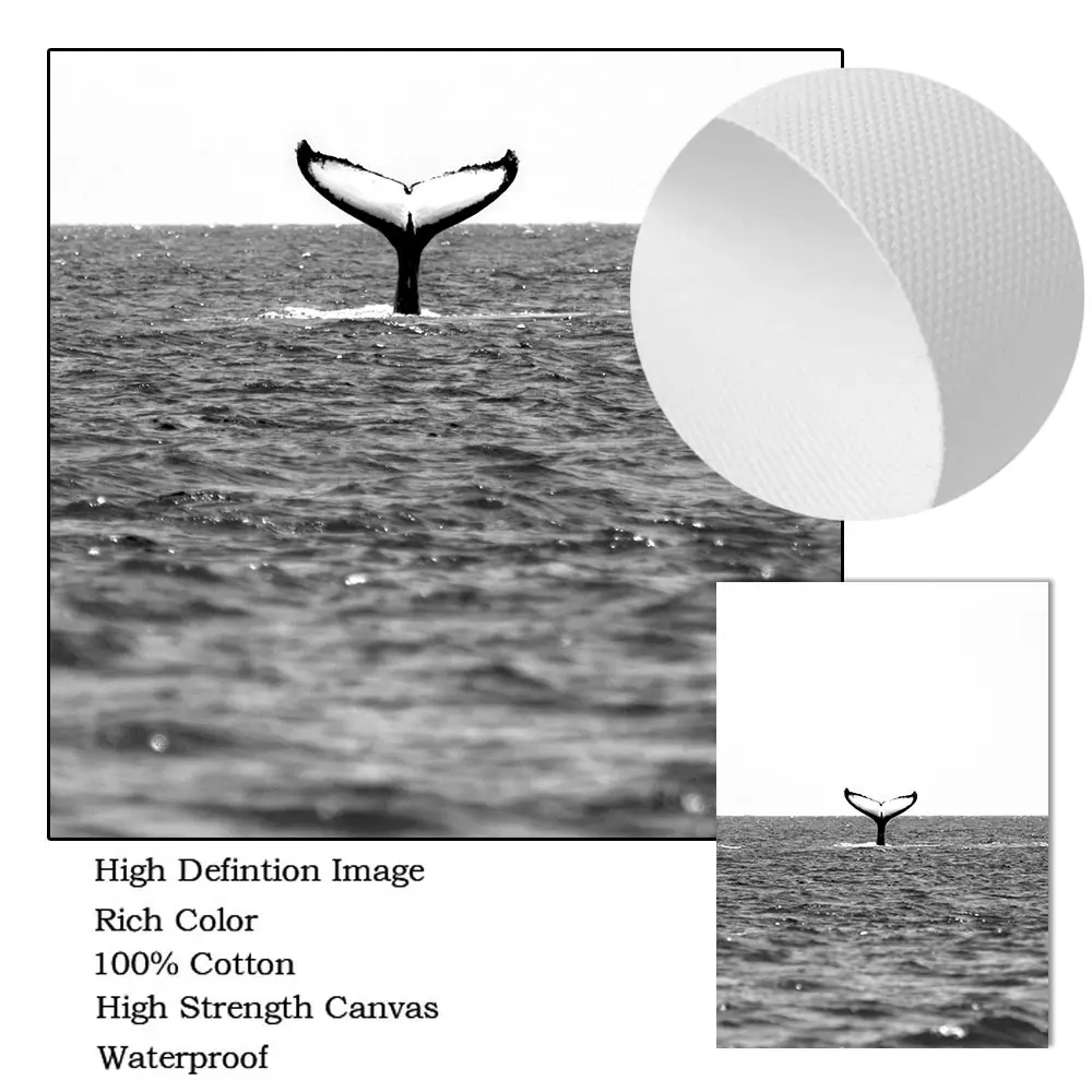 Черно-белый полотняный плакат с Китом, морское кокосовое дерево, фо...