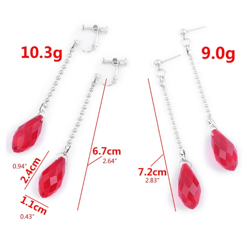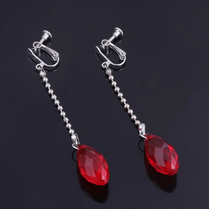 Серьги Kurapika Hunter x Hunter Аниме Косплей красные кристаллы слез Длинная цепочка Косплей Висячие серьги ювелирные изделия