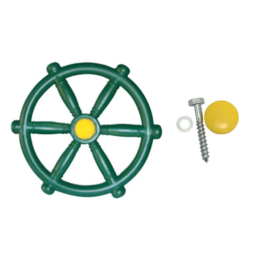 2. Удобный захват: колесо имеет гладкую поверхность, которую легко захватить, и она станет частью бесконечного веселья для вашего ребенка.3. Идеальный аксессуар: монтажное оборудование входит в комплект для крепления к любому деревянному набору качелей/игровым наборам.4. Правильный размер: диаметр колеса составляет около 11,81 дюйма, что будет практичным в использовании.5. Стандарт безопасности: колесо соответствует стандарту безопасности s, и оно станет отличным аксессуаром пиратского корабля.Технические характеристики (примерно):Наименование: пластиковое колесоРазмер: 30 см/11,81 дюйма в диаметреМатериал: пластикПодходящий возраст: от 3 лет и старшеКомплектация:Колесо пиратского корабля * 1