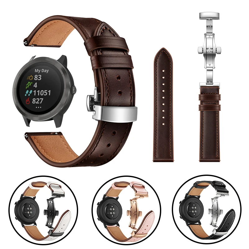 Кожаный ремешок с пряжкой-бабочкой для Garmin Venu GarminMove 3 GarminActive S Vivoactive 4 браслета 20 мм 22 мм Ремешки для наручных часов
