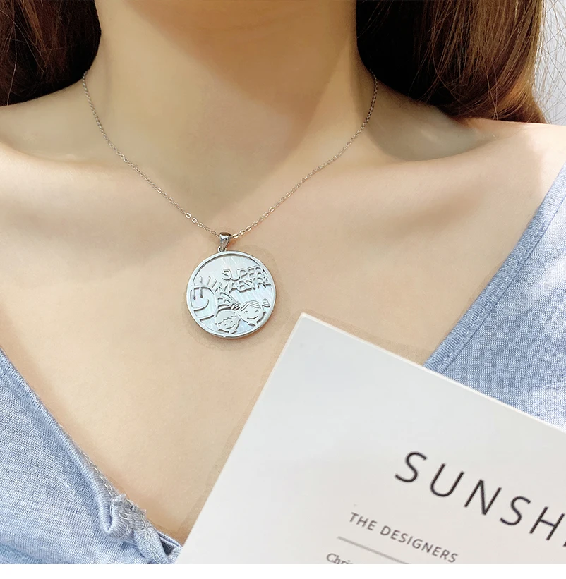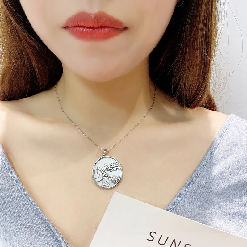 Ожерелье из стерлингового серебра s925 пробы с натуральной ракушкой креативная мультяшная голова кулон с портретом индивидуальная модная цепочка до ключиц для мальчиков и девочек