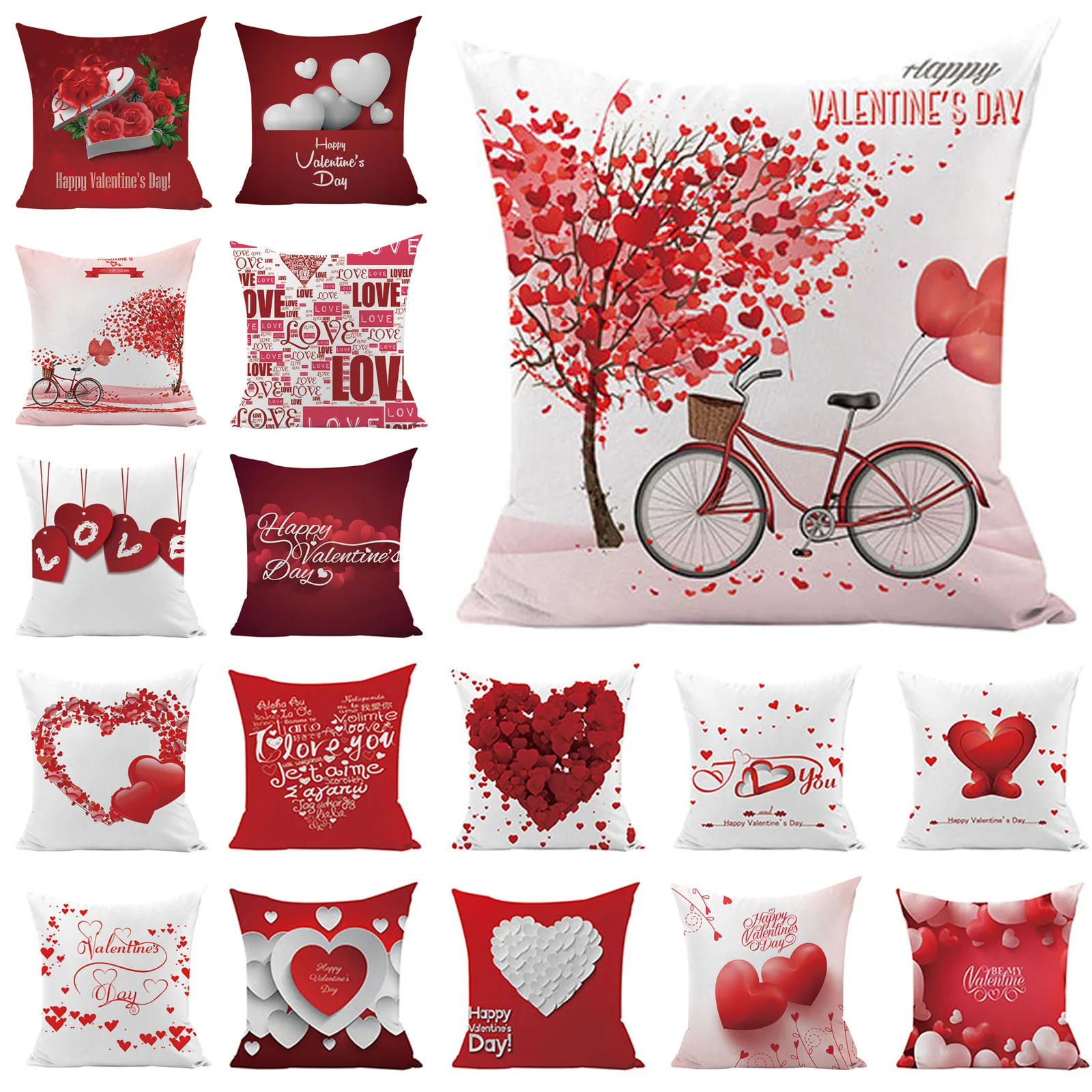 Лидер продаж, наволочка для подушки на День святого Валентина, льняная наволочка для подушки с принтом, аксессуары для украшения дивана, 45x45 см, Прямая поставка