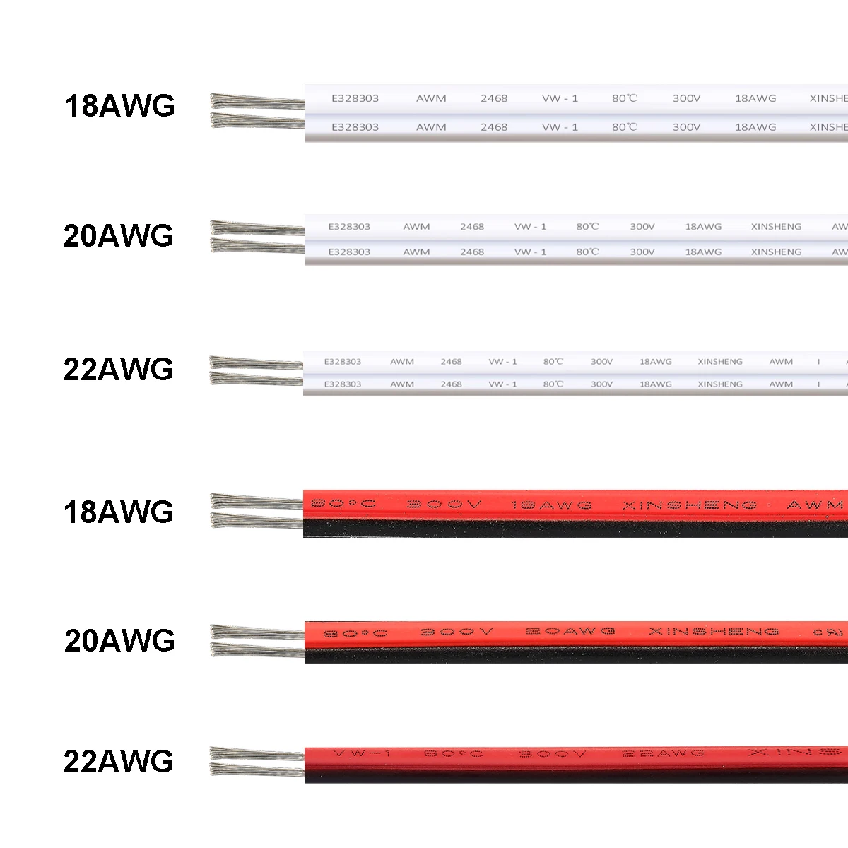 100% абсолютно новые 2 pin Электрические Провода Тип кабеля: 22AWG / 20AWG / 18AWG 80C 300V Материал проводника: Луженая медь Изоляционный материал: ПВХ Цвет кабеля: красный, черный, белый, серый, черный Длина кабеля: 5 м/10 м/20 м/30 м/50 м/100 м опциональноПосылка включает в себя: