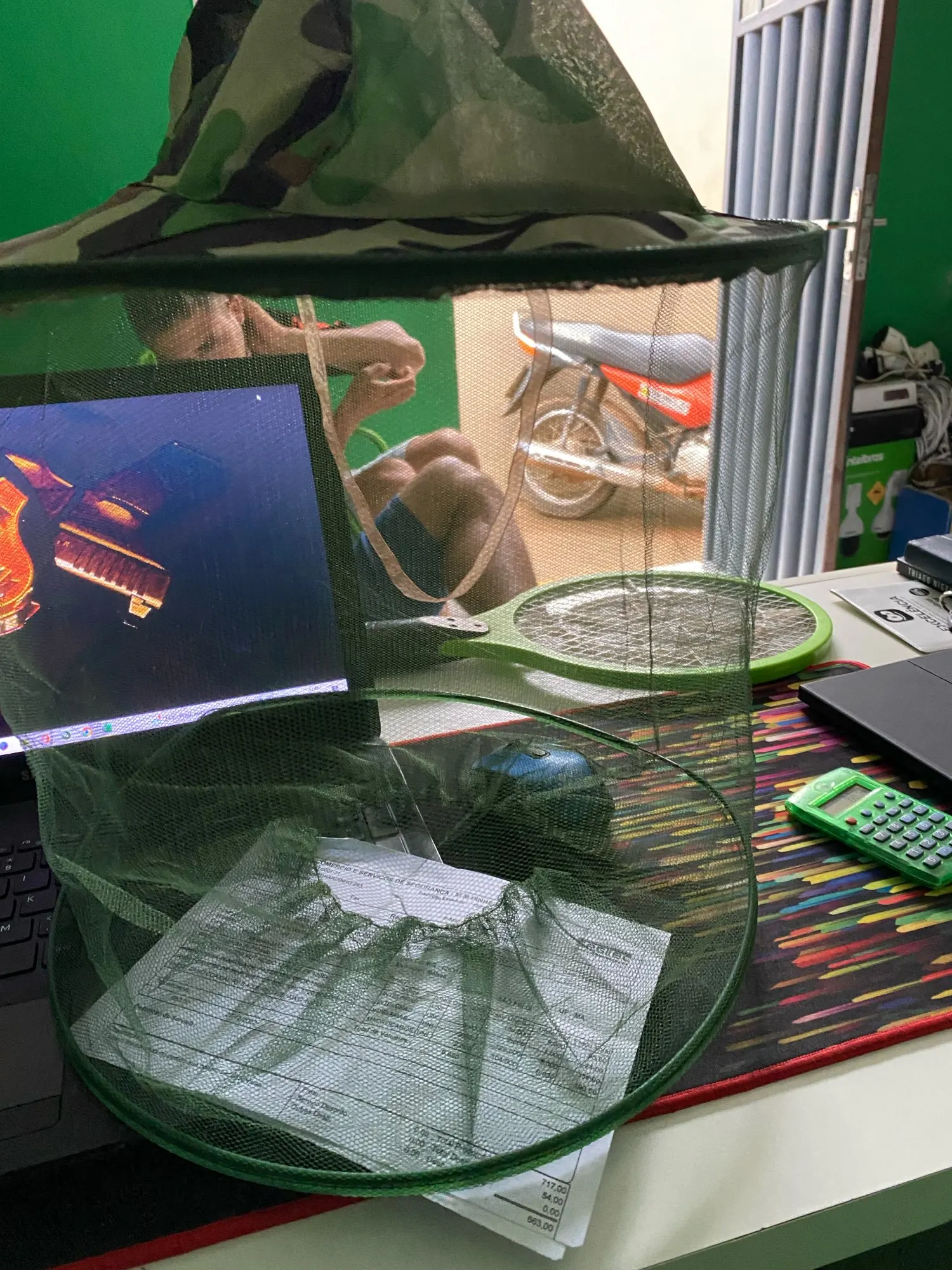 Легкий пластиковый холст, но который отлично подойдет, поэтому он сделан .... Защитите комаров! Сетка опускается до плеч и прочная.