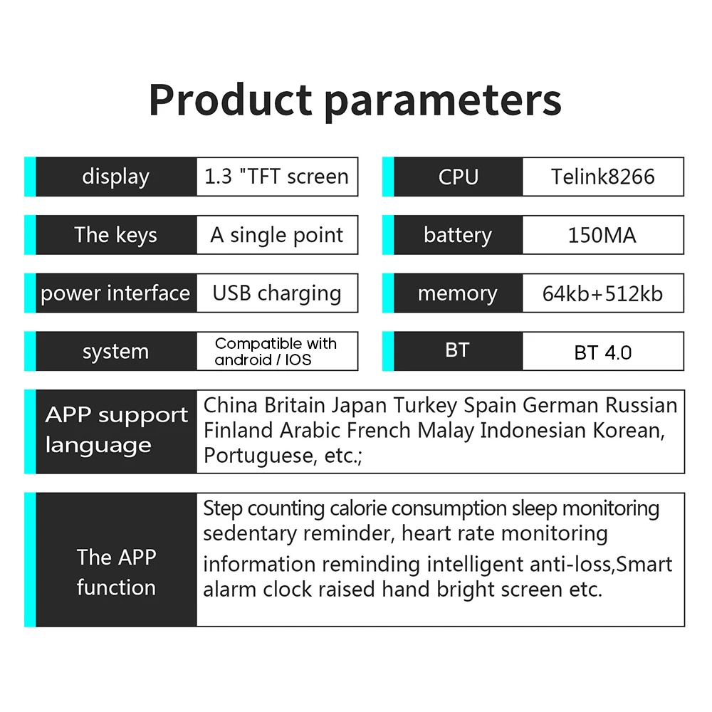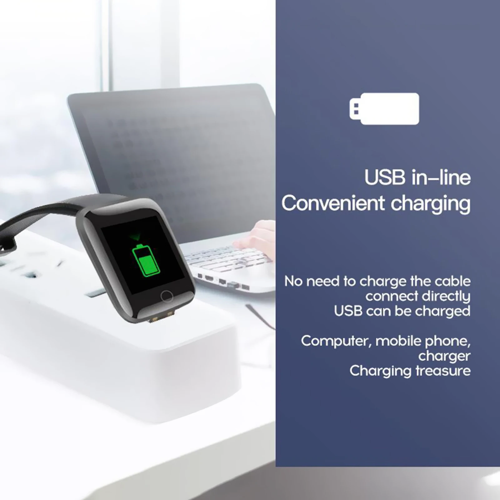 Особенности:2,4-дюймовый цветной TFT-экран с высокой чувствительностью и одним касанием управления, что позволяет реализовать различные операции.Подключаемый к USB-разъему для зарядки, легко и удобно снимать ремешок для запястья.IP67 Водонепроницаемый для повседневной жизни, непрерывно записывает ваши ежедневные шаги ходьбы, расстояние и сожженные калории. Подходит для занятий спортом на открытом воздухе, поможет вам разработать научный фитнес-план.Поддержка уведомления о звонках и сообщениях, важная информация не будет упущена.С профессиональным датчиком пульса отслеживайте свой пульс в течение 24 часов, когда вы засыпаете, он автоматически отслеживает качество сна и записывает данные в приложении. Спецификация:Модель: D13Тип: умные часыЦвет: черный, красный, синий, зеленый, фиолетовый (по желанию)Материал: ТПУ, пластикВерсия BT: BT 4,0Совместимая ОС: Android 5,0 и выше/IOS9.0 и вышеРежим работы: сенсорная кнопкаЕмкость аккумулятора: 150 мАчФункции: будильник, напоминание о сидячем положении, монитор сердечного ритма, шагомер, монитор сна, напоминание о звонках/сообщениях, удаленная камера и многое другое.Название приложения: Yoho SportsТип оповещения: вибрацияПосылка: 12*8*3 см/4,7*3,1 * дюймаВес посылка: 43 г/1,5 унции Посылка тация:1 * умные часы1 * Руководство пользователя Уважаемый покупатель,ЭтоЧасы не требуют зарядного кабеля, их можно заряжать напрямую с помощью зарядной головки или интерфейса USB(Без зарядной головки)