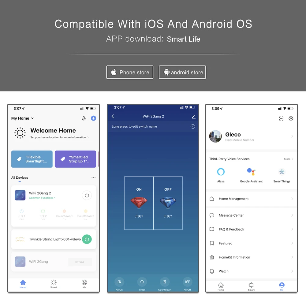 Feature 3Wifi Remote Voice Dimmer Light Switch