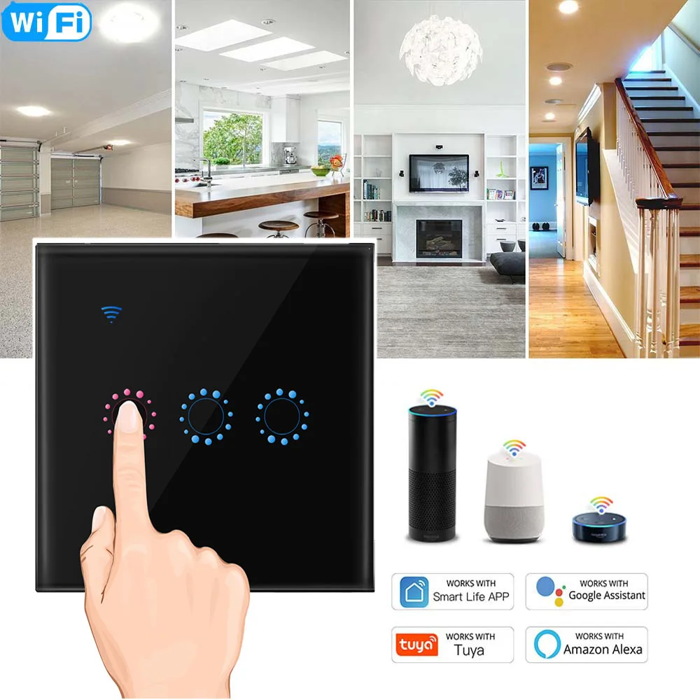 Умный настенный сенсорный выключатель с Wi-Fi, 123 клавиш, дистанционное управление голосом, таймер, выключатель с поддержкой Alexa Google Home